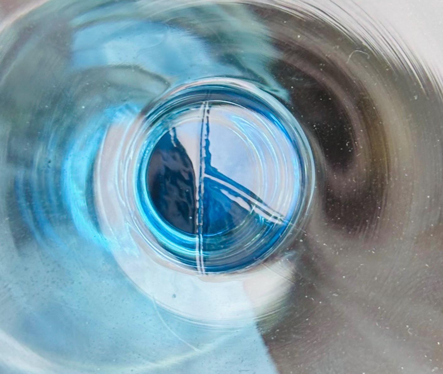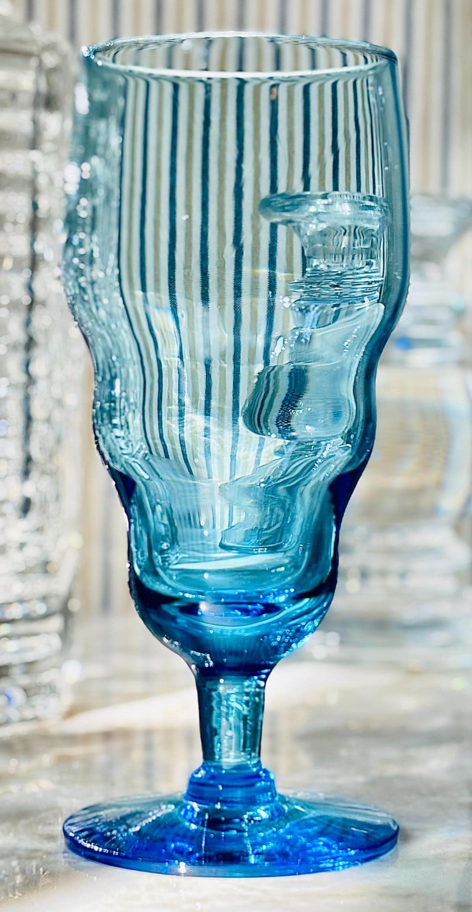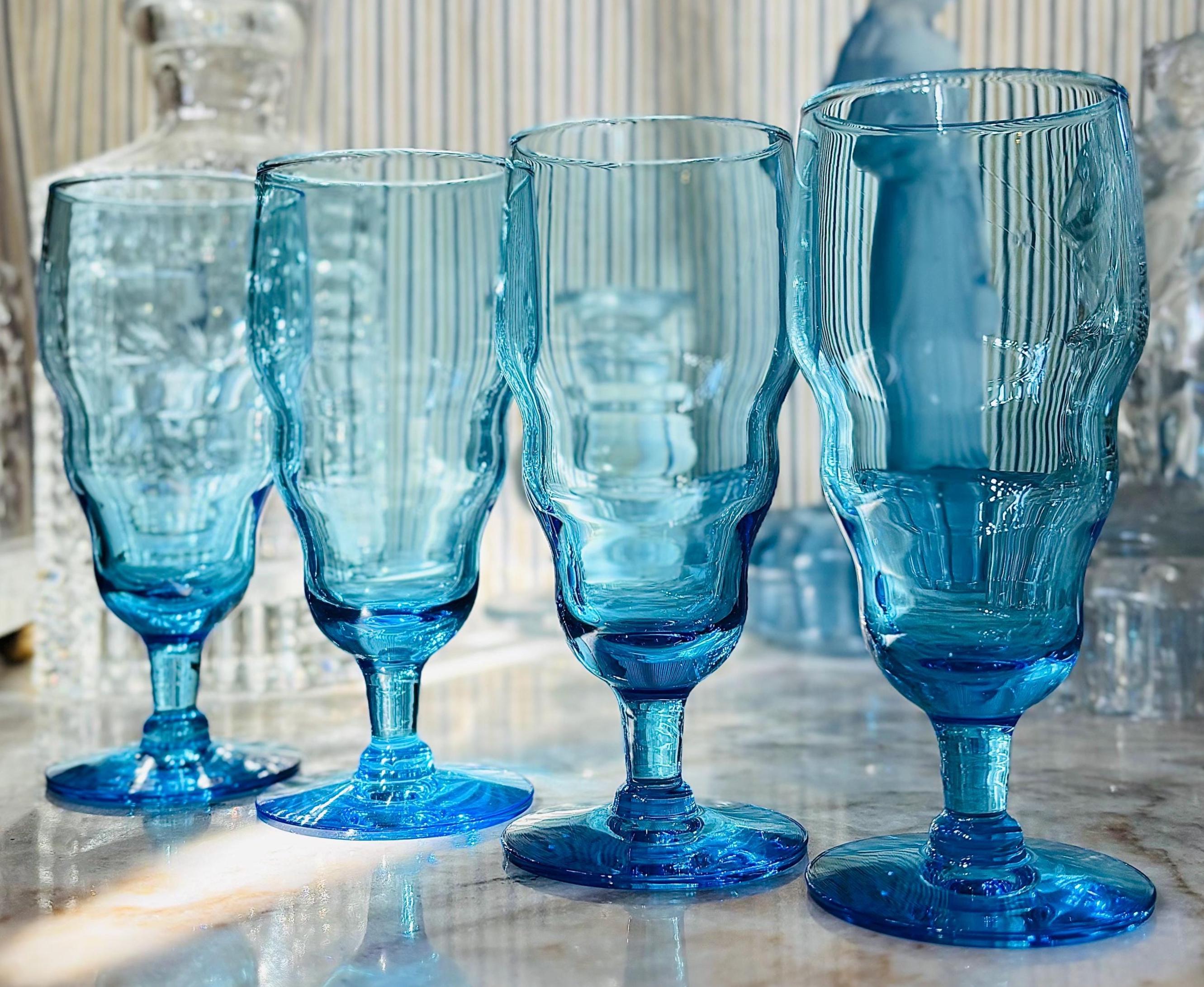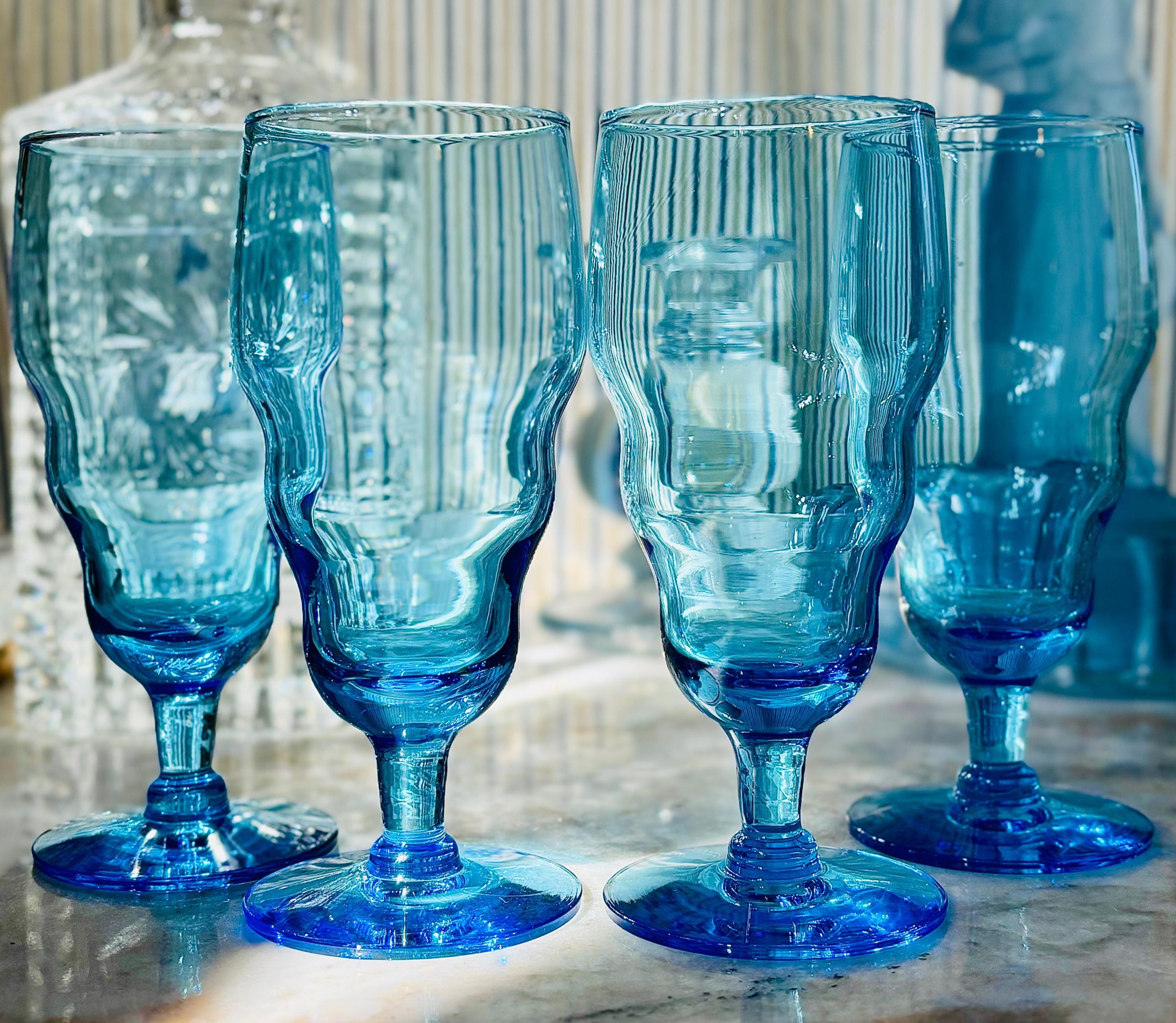 Magnificent rare set of electric blue handblown vintage champagne, wine, or port glasses.