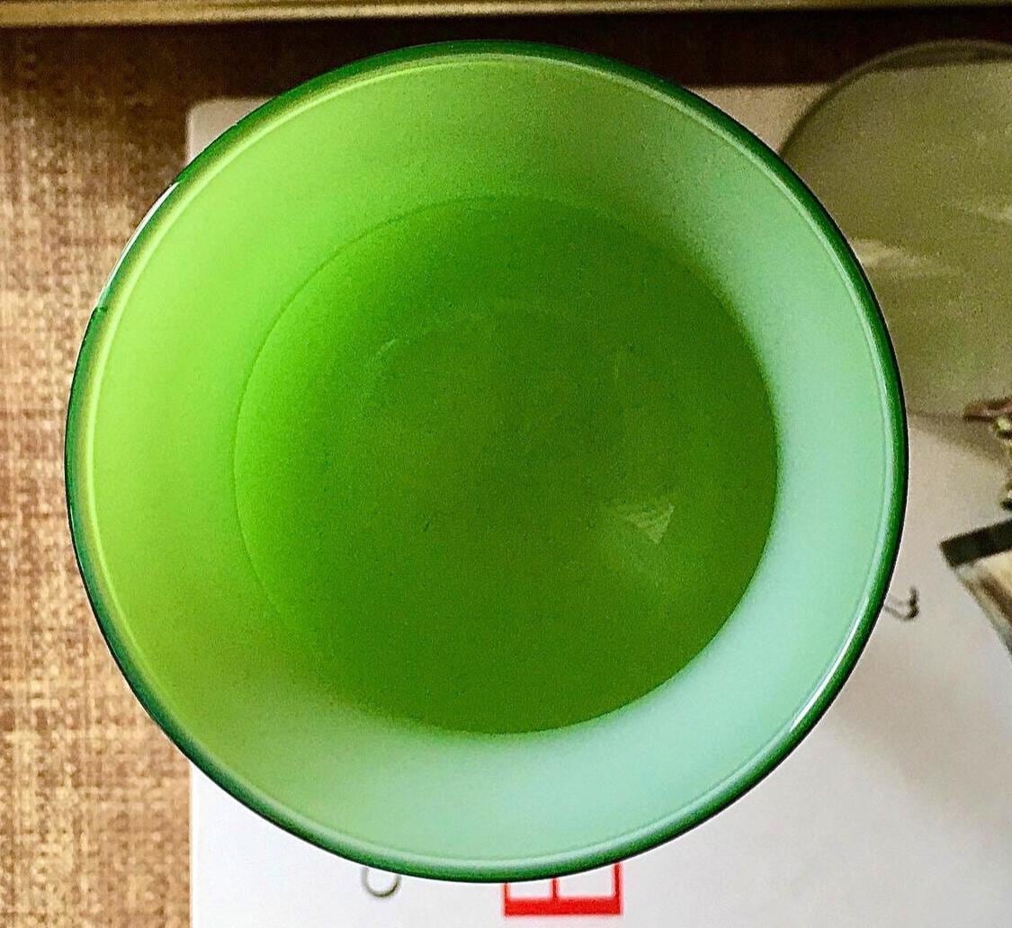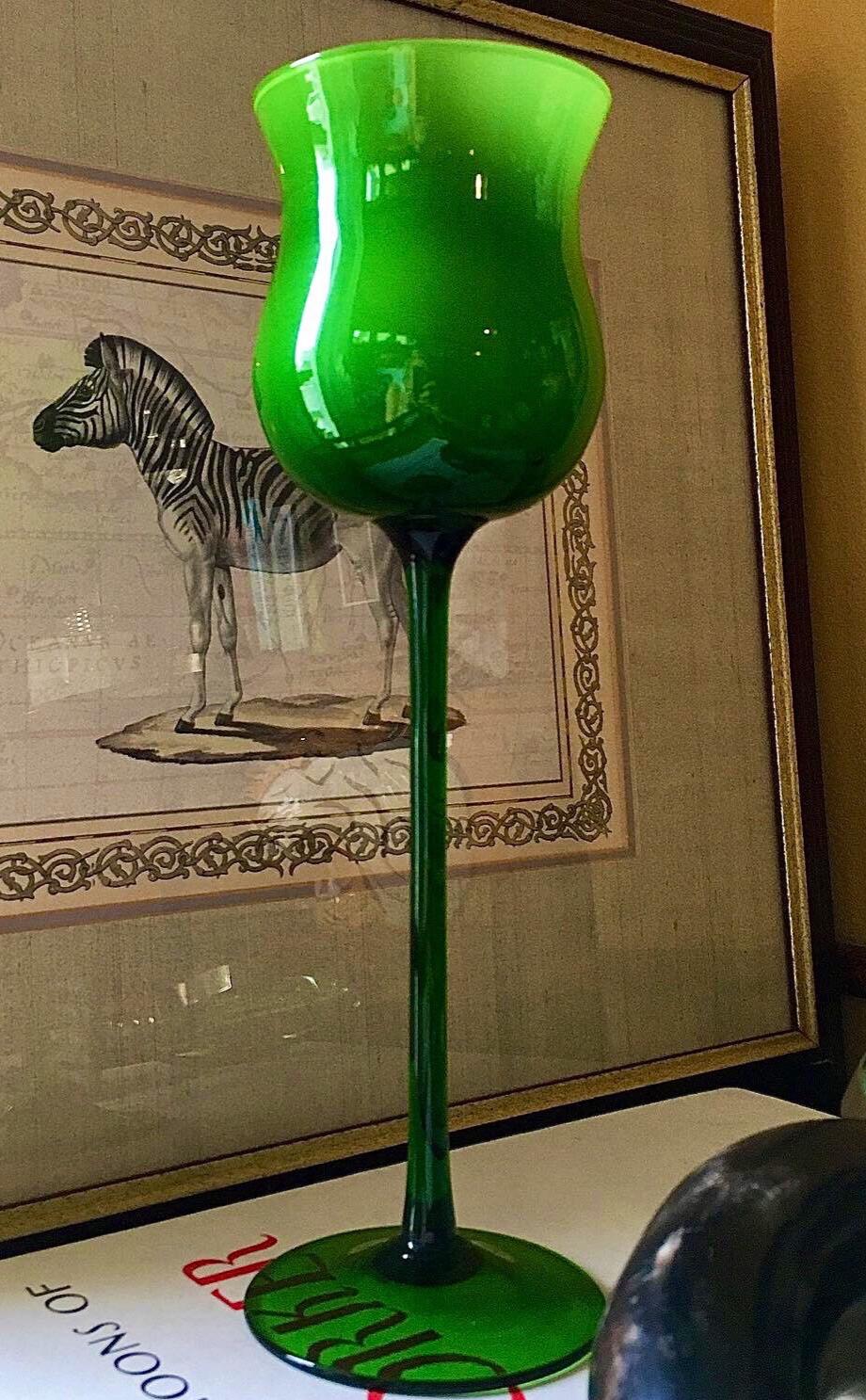 Exclusively TruffleandFig, from our private collection. Carlo Moretti Empoli Glass. In it’s glorious Kelly green handblown cased glass (white interior). A phenomenal pristine piece for the bougie bar. We love these iconic,