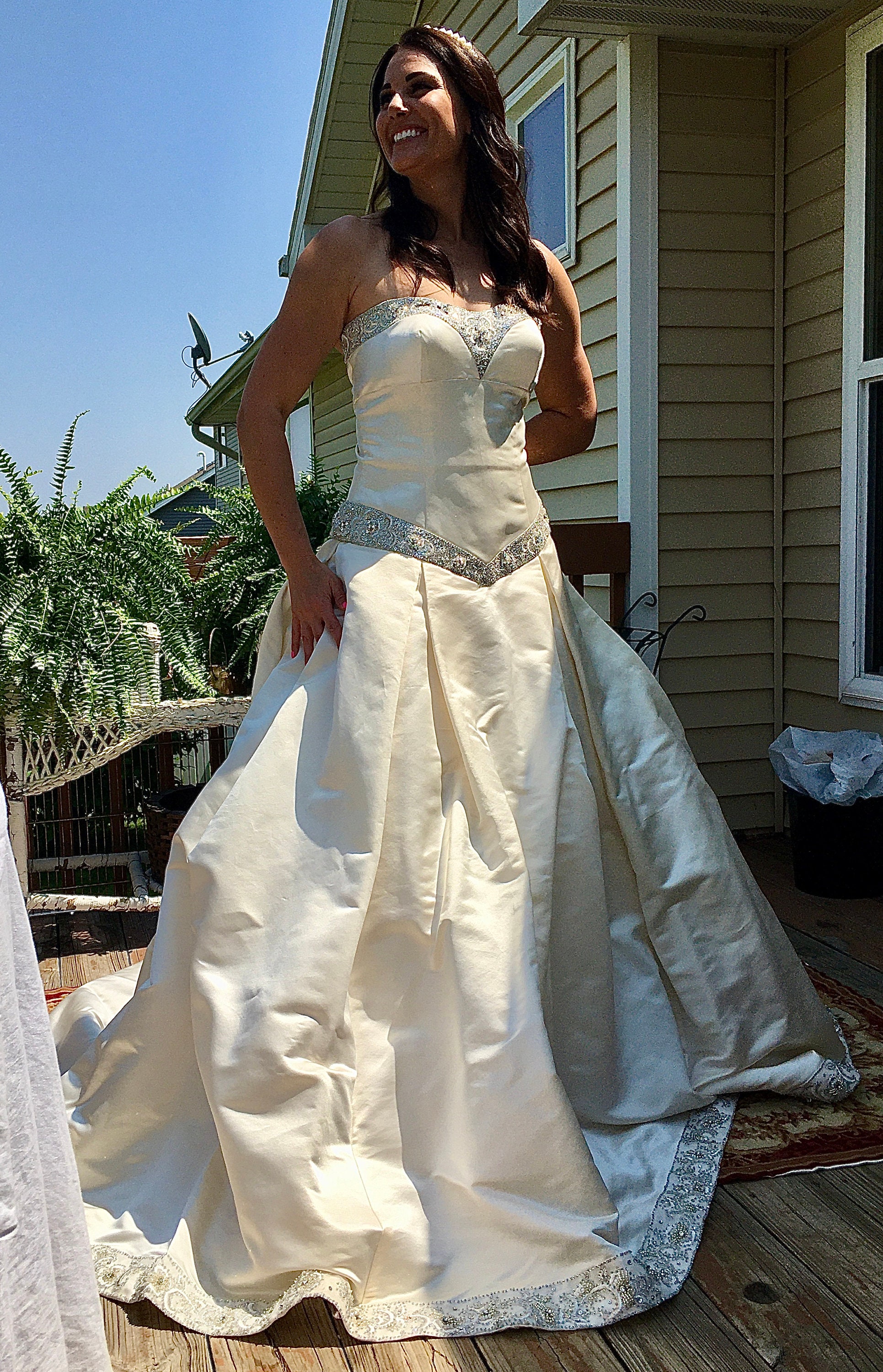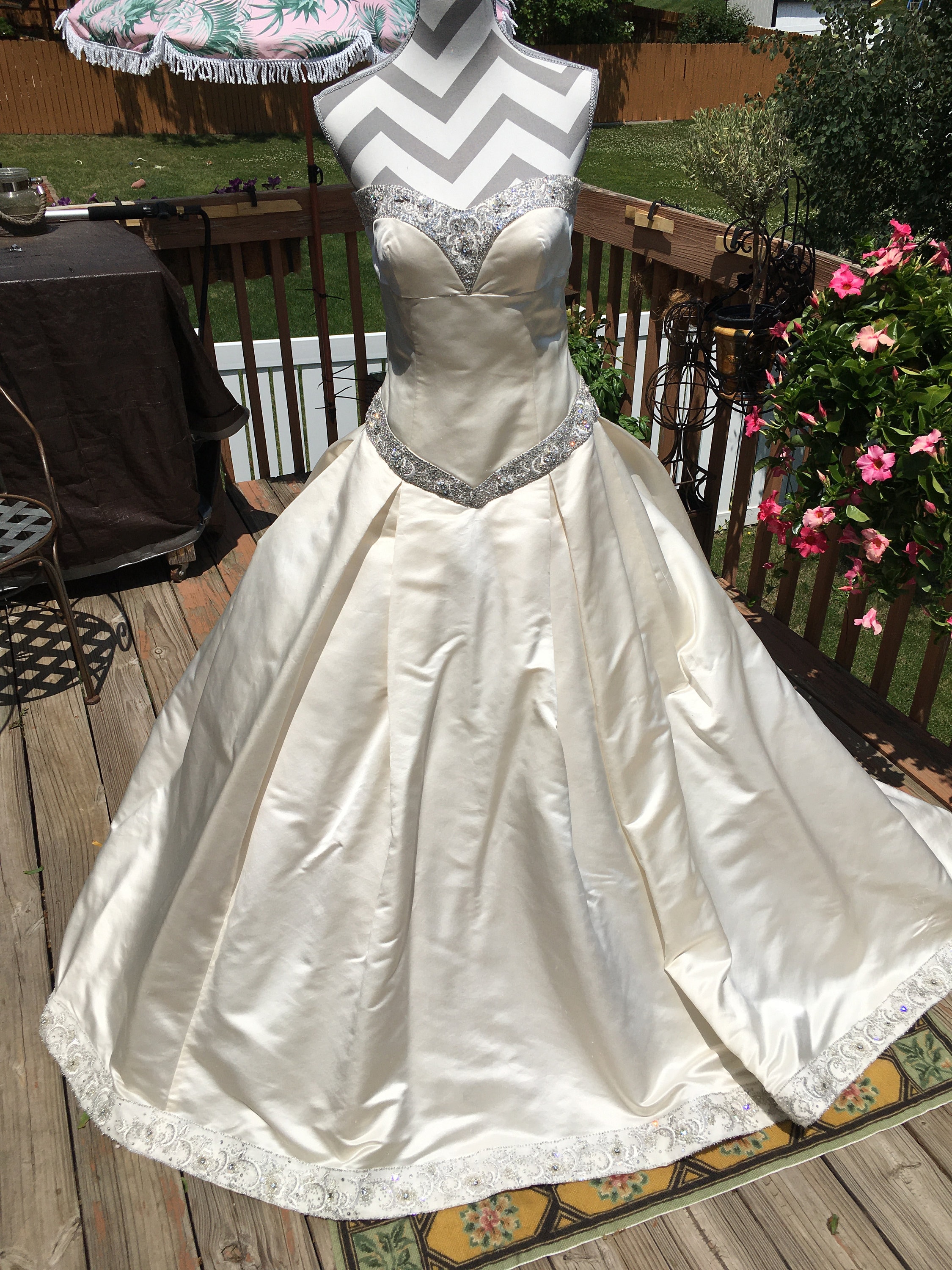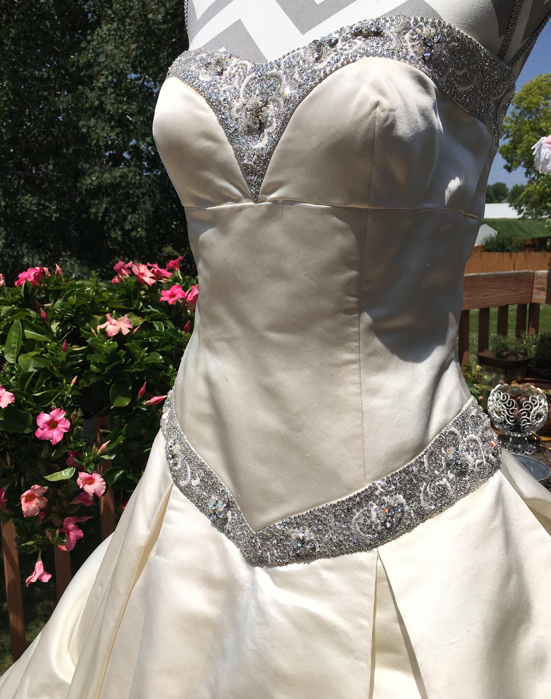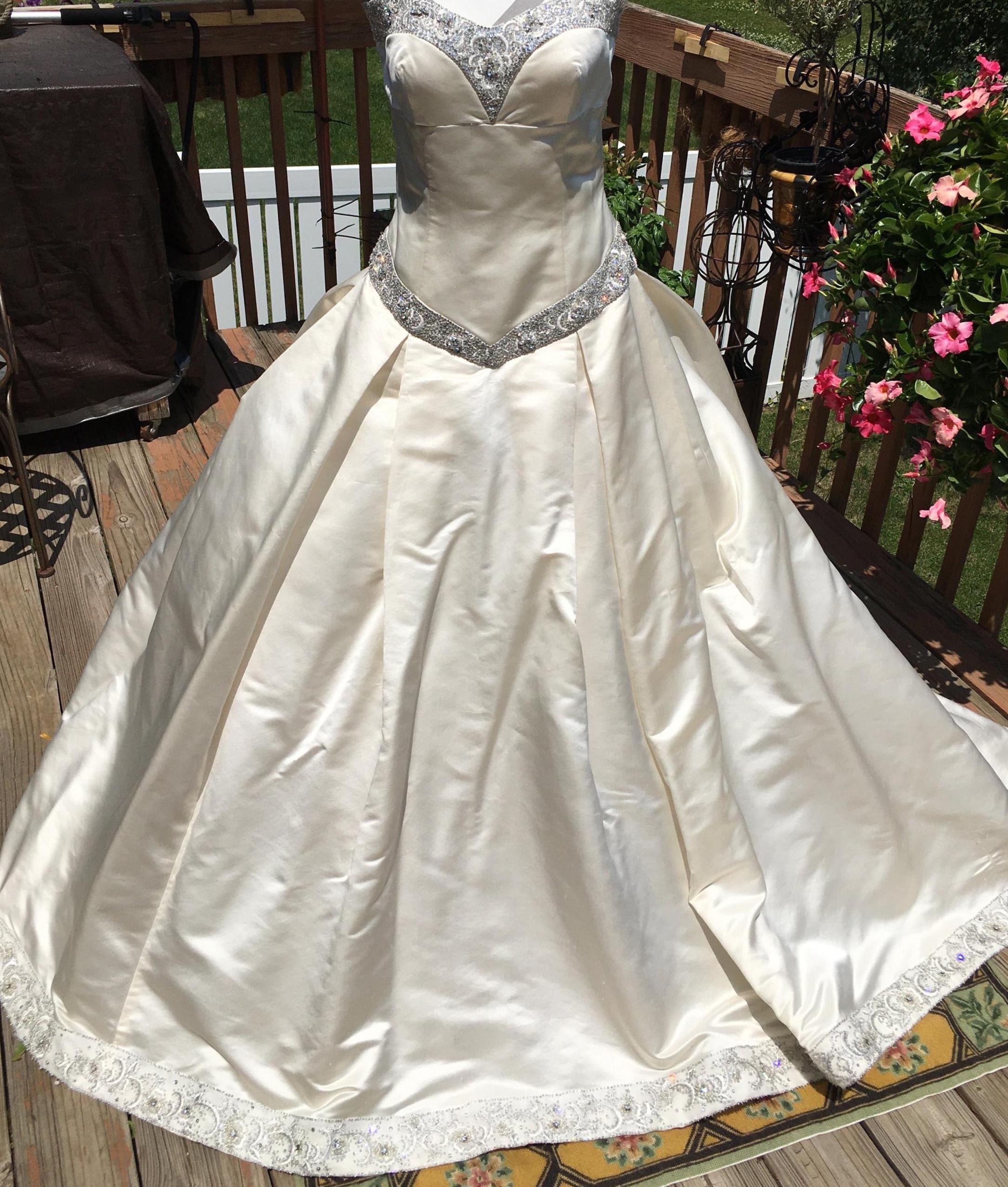 A creamy ivory, 100% duchess silk, with an amazing tulle crinoline.