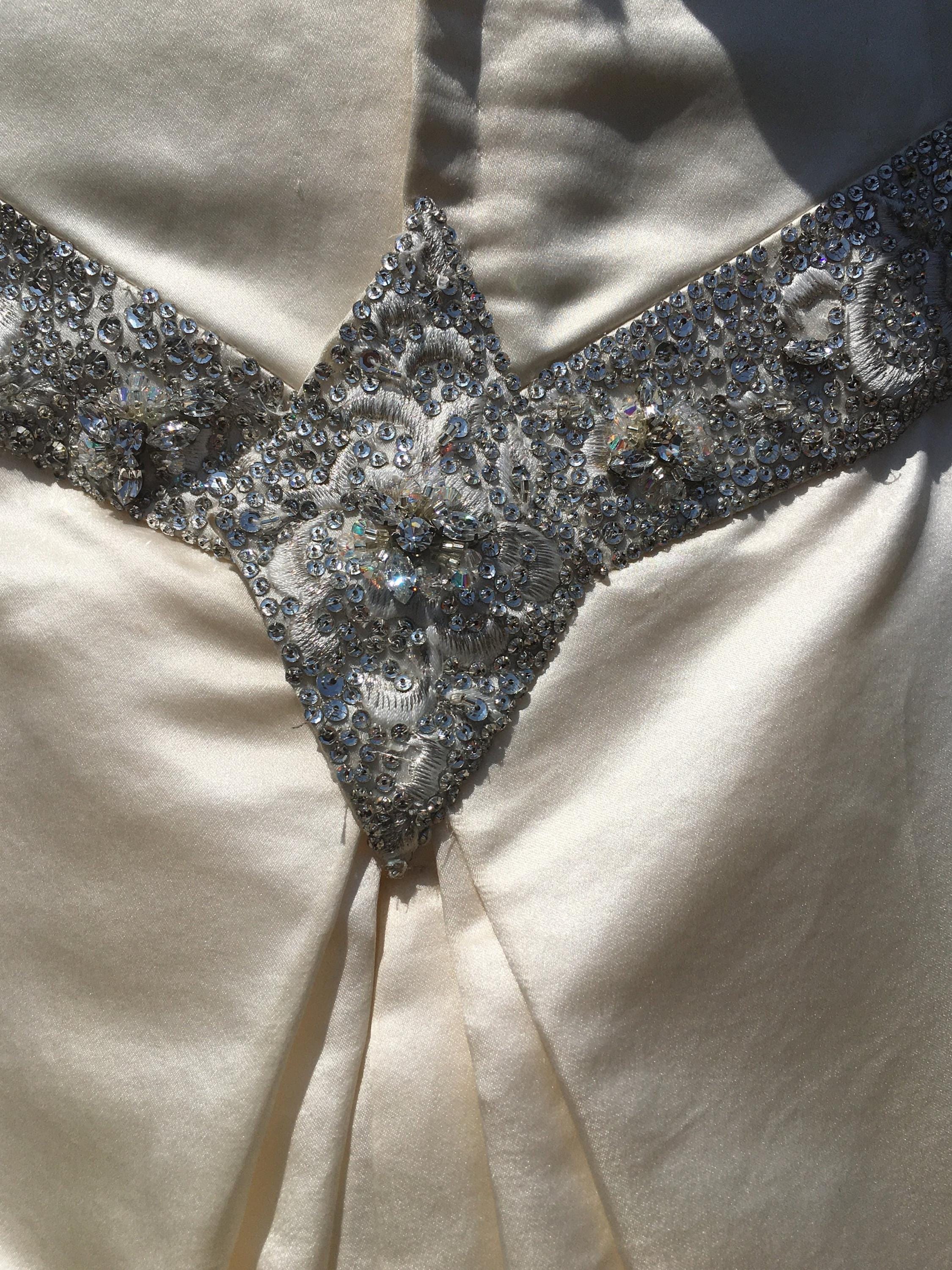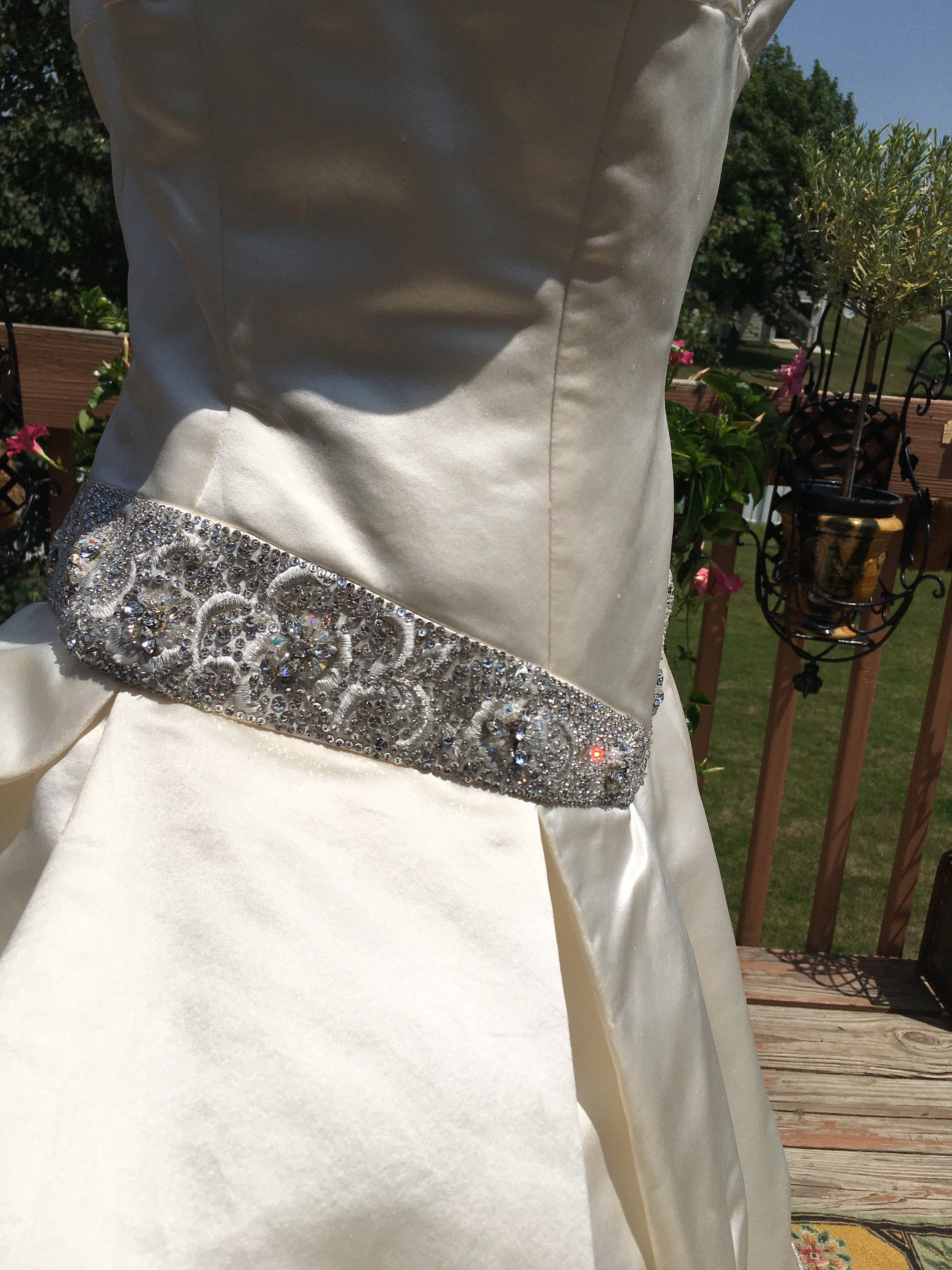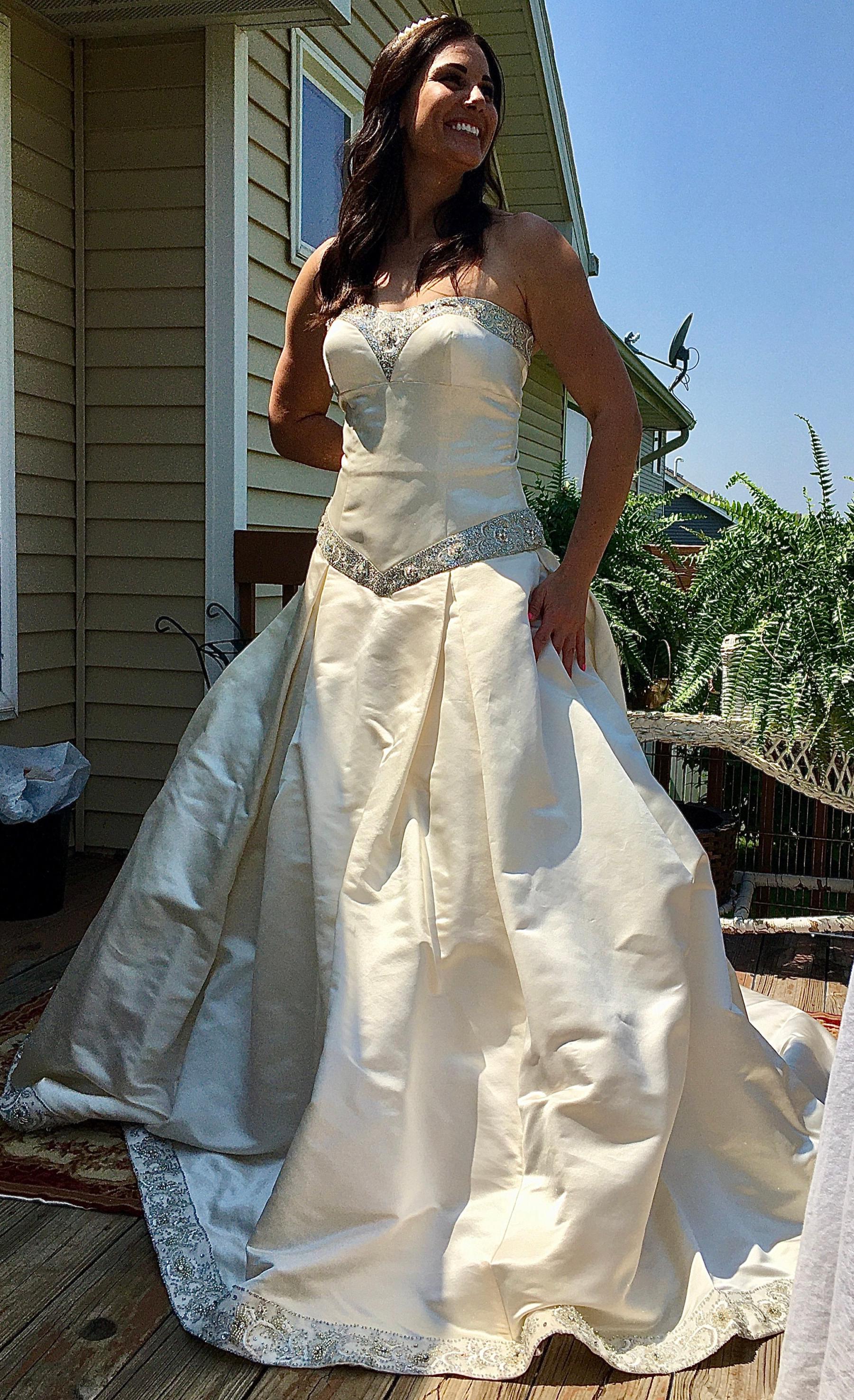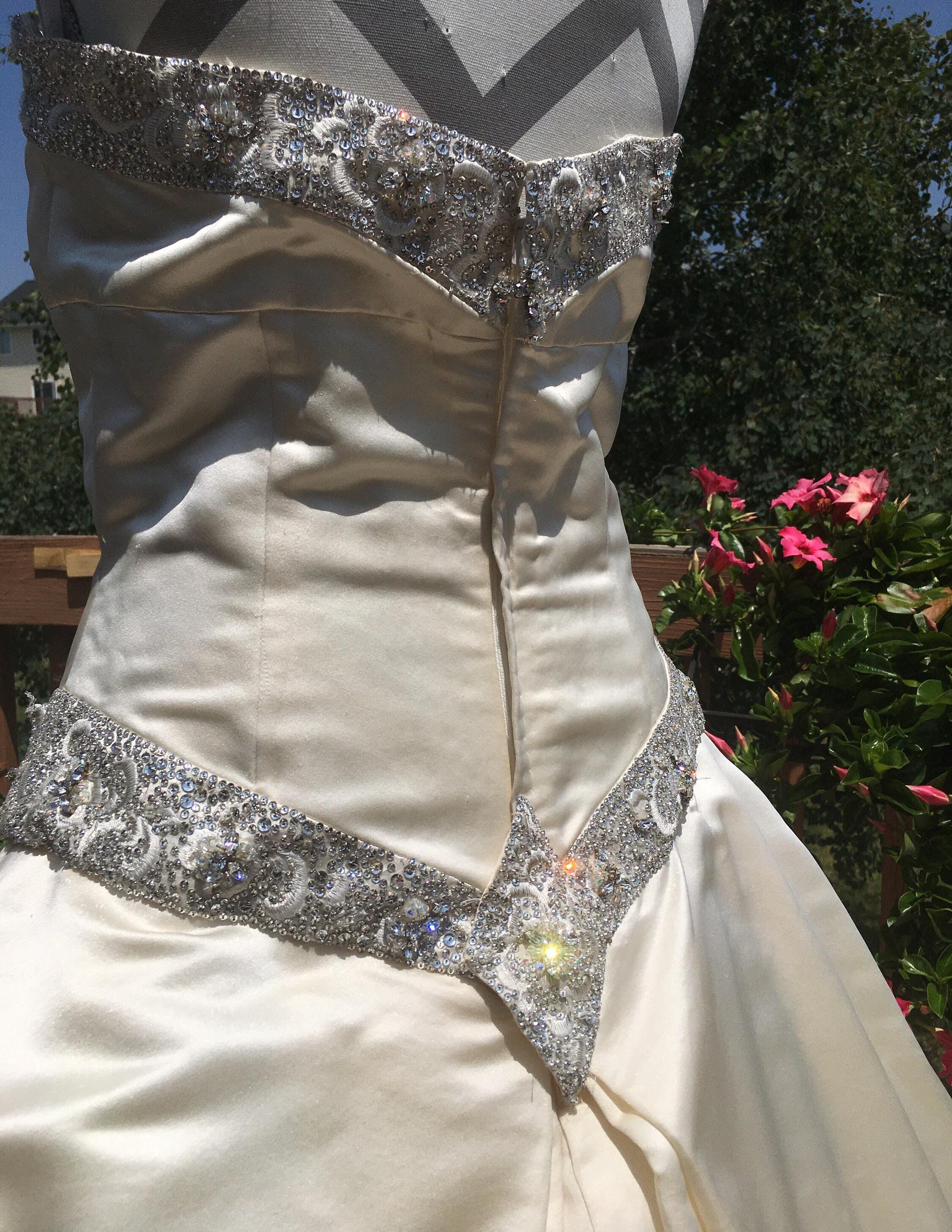 A creamy ivory, 100% duchess silk, with an amazing tulle crinoline.