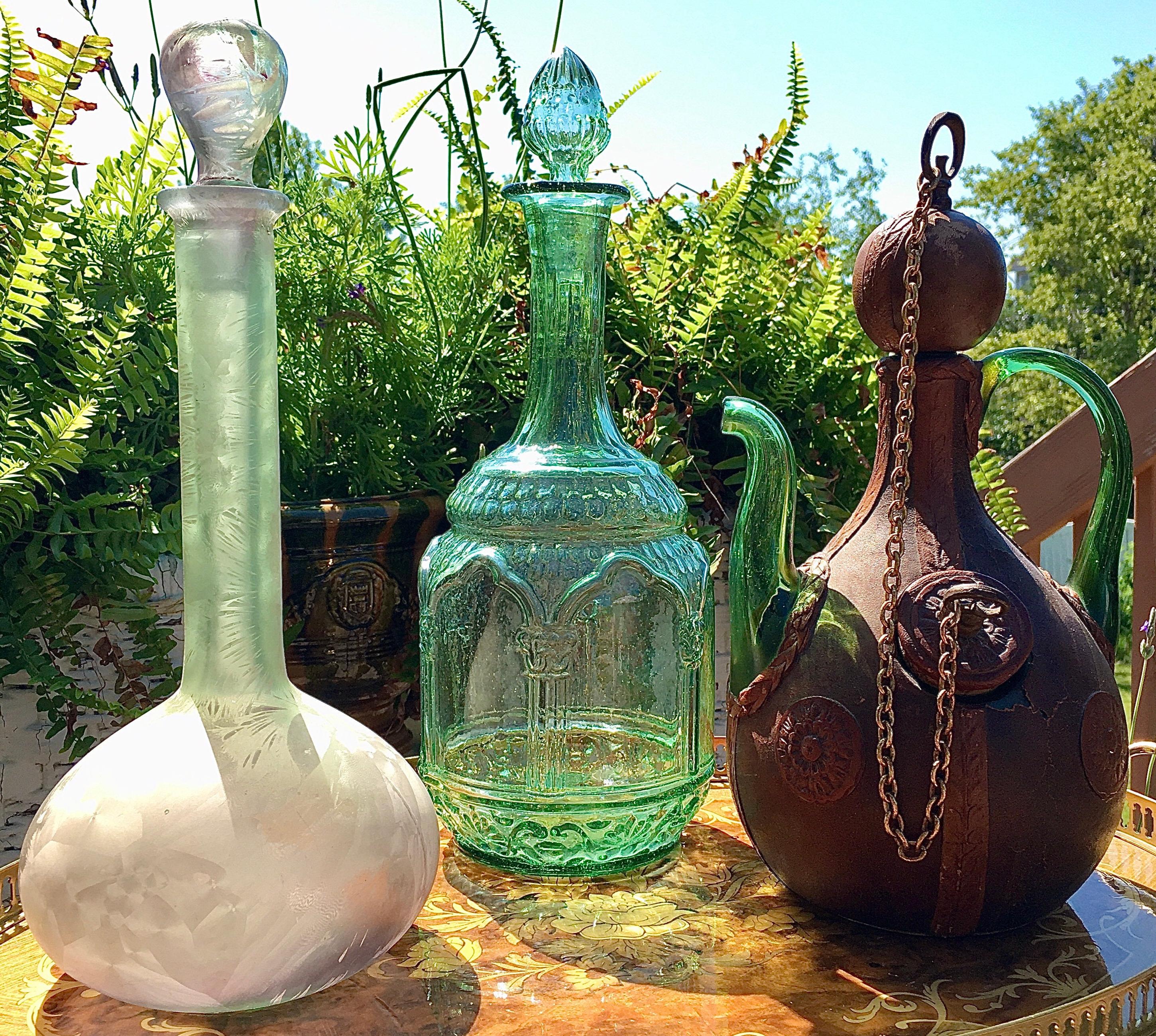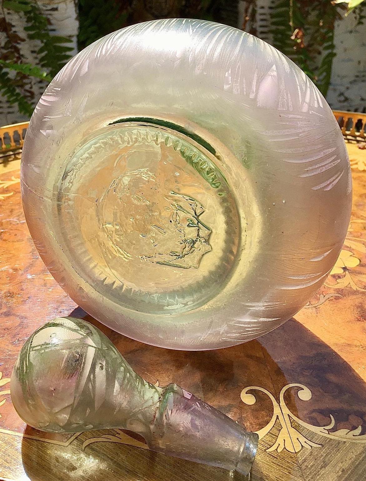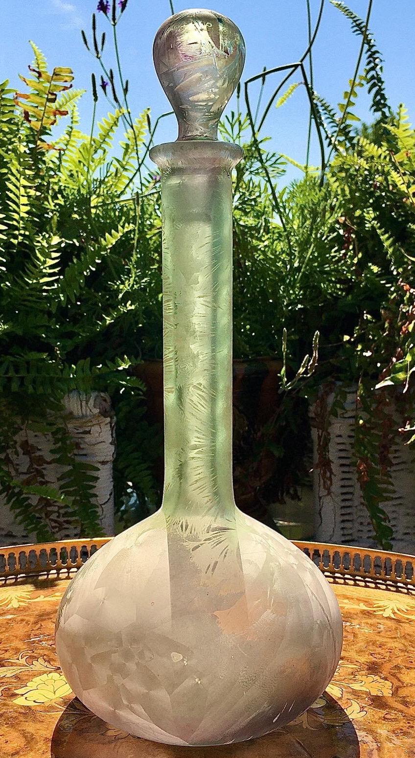 Extraordinary find! Antique Scavo Murano Decanter. This is art glass and bar jewelry. Extremely collectible and incredibly beautiful. This spectacular antique decanter, is in breathtaking colors of sea green and lavender.