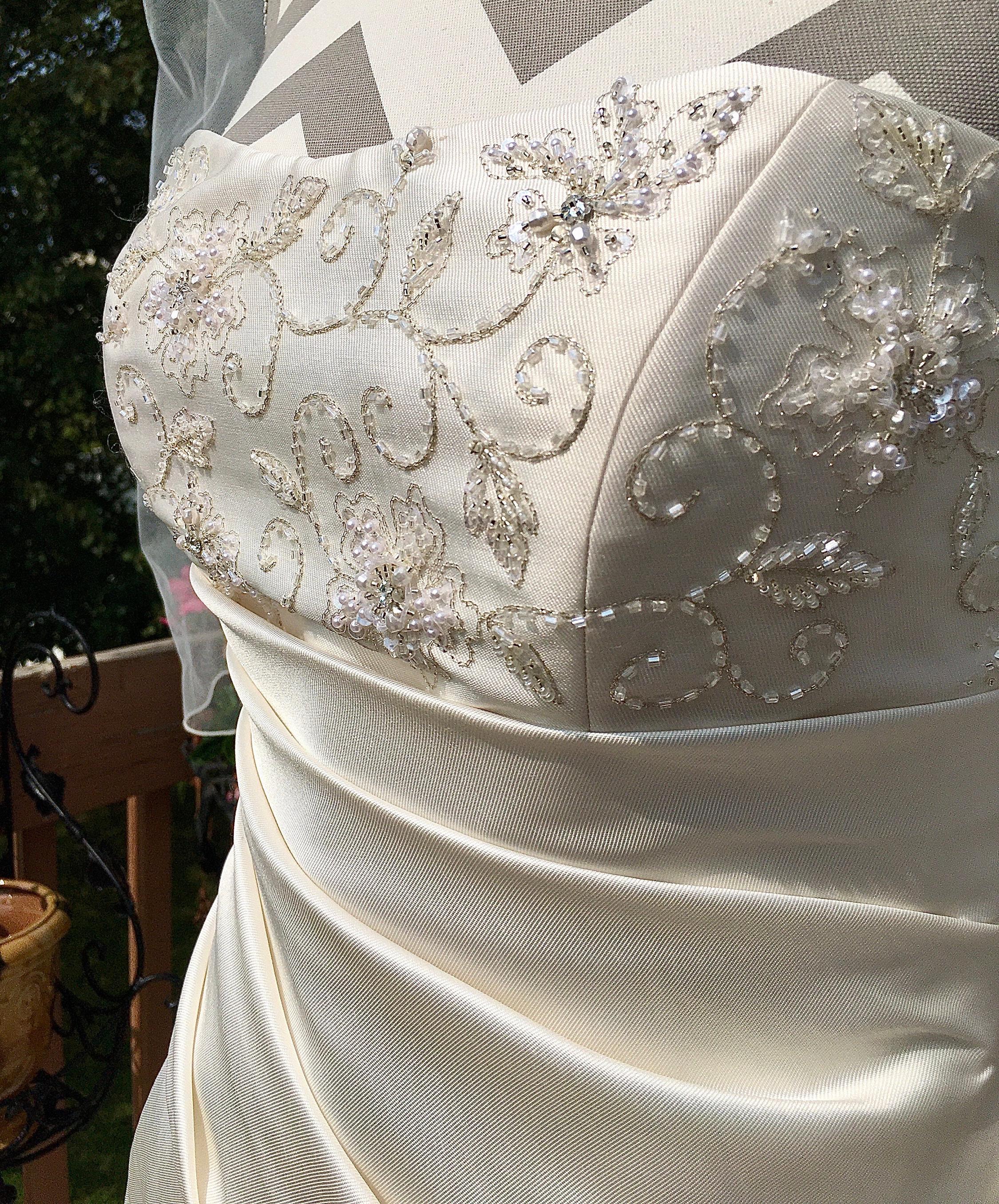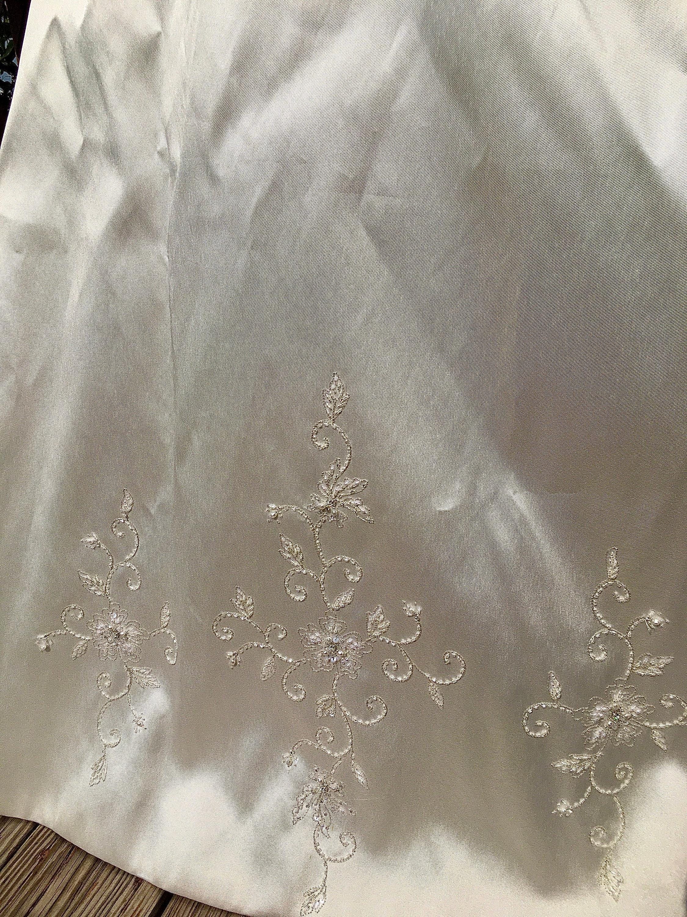 *Note: This gown was taken out of it’s heirloom box, hence some wrinkling. We feel its important to allow the buyer to handle the steaming of an already heirloom cleaned treasure!