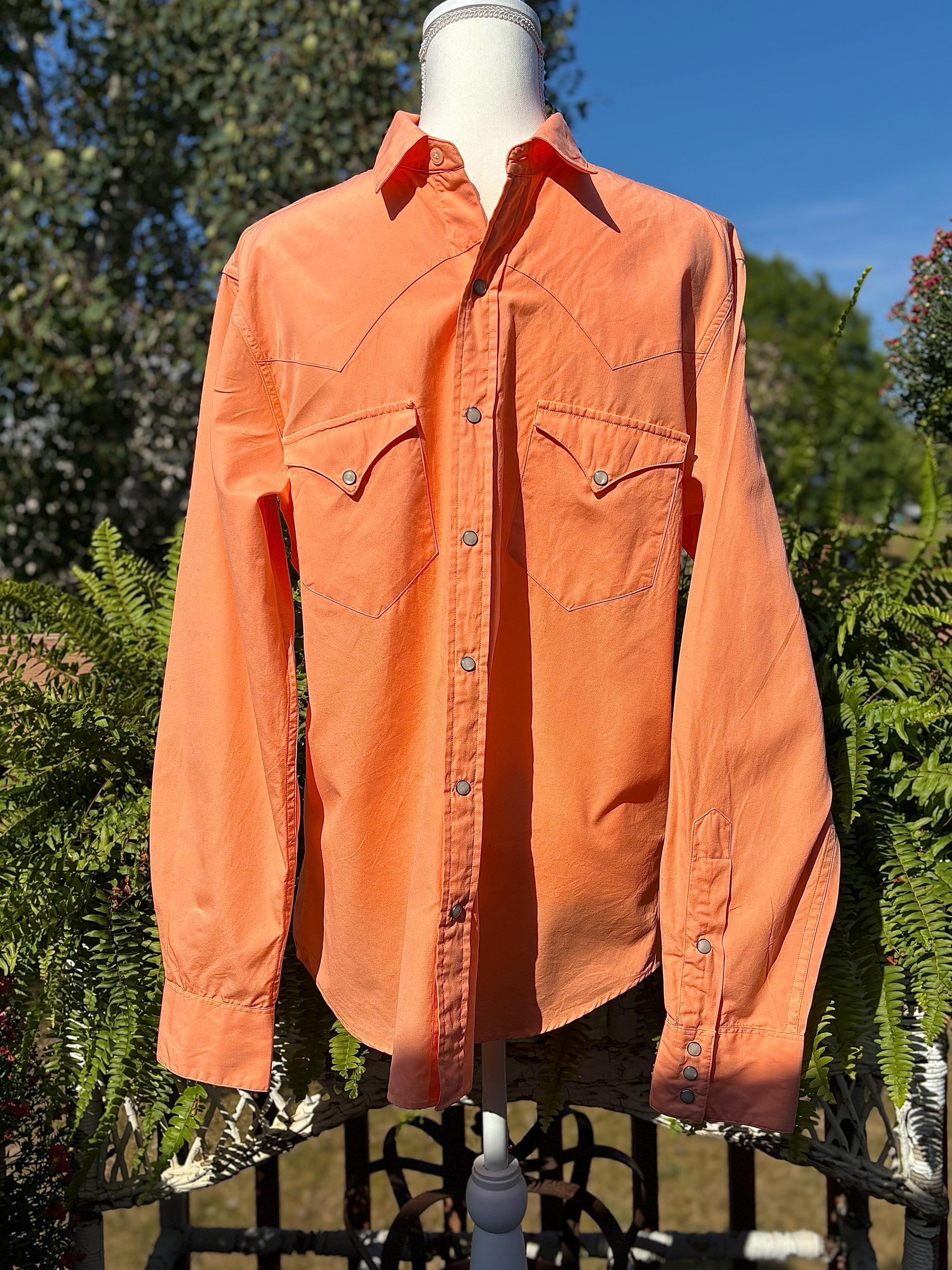 Polo by Ralph Lauren RL WESTERN Shirt. Rustic Chic and fabulous Fall vibes! This pristine Men's or gender neutral Western Shirt is an all year round style. Made of 100% 2 Ply cotton. Pocketed with Mother of Pearl snap buttons throughout. Seamed in a traditional western style.
