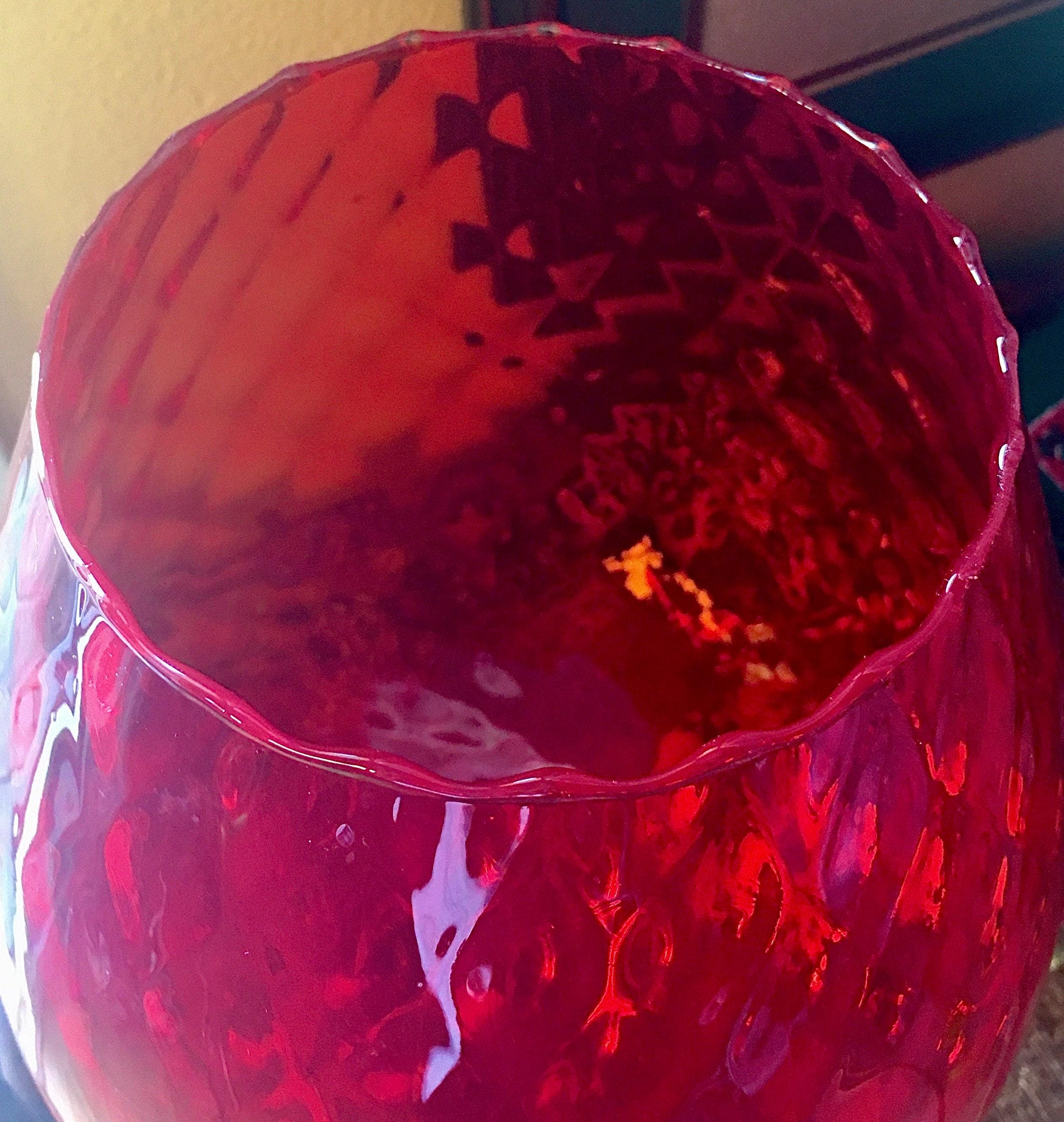 Designed in the beloved optic glass. A gorgeous diamond design, with an amazing reflective glow in any light. Possesses a lovely tiny scalloped edge, and a bodacious balloon shape.