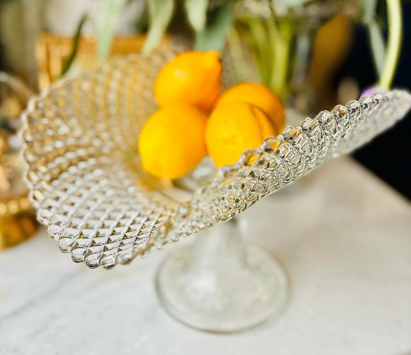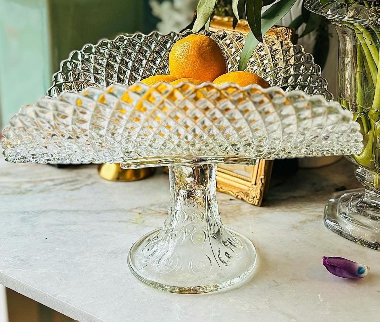 An exquisite and exceptional fruit stand, by LE Smith Glassware.