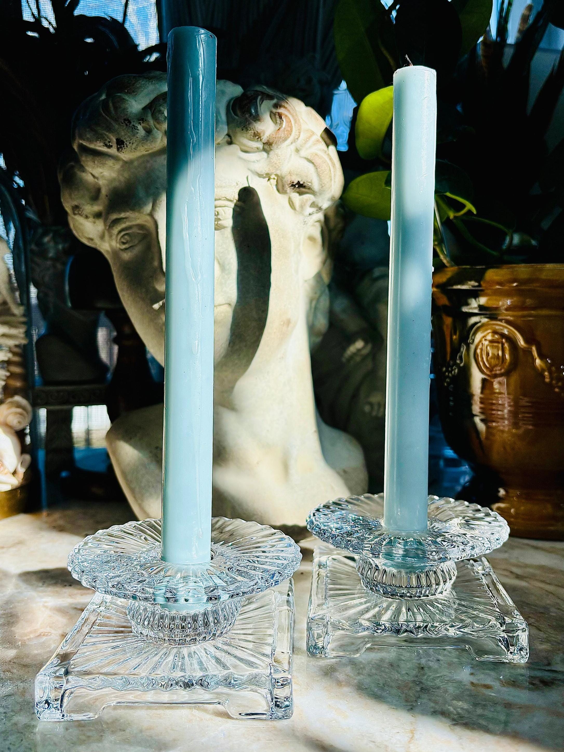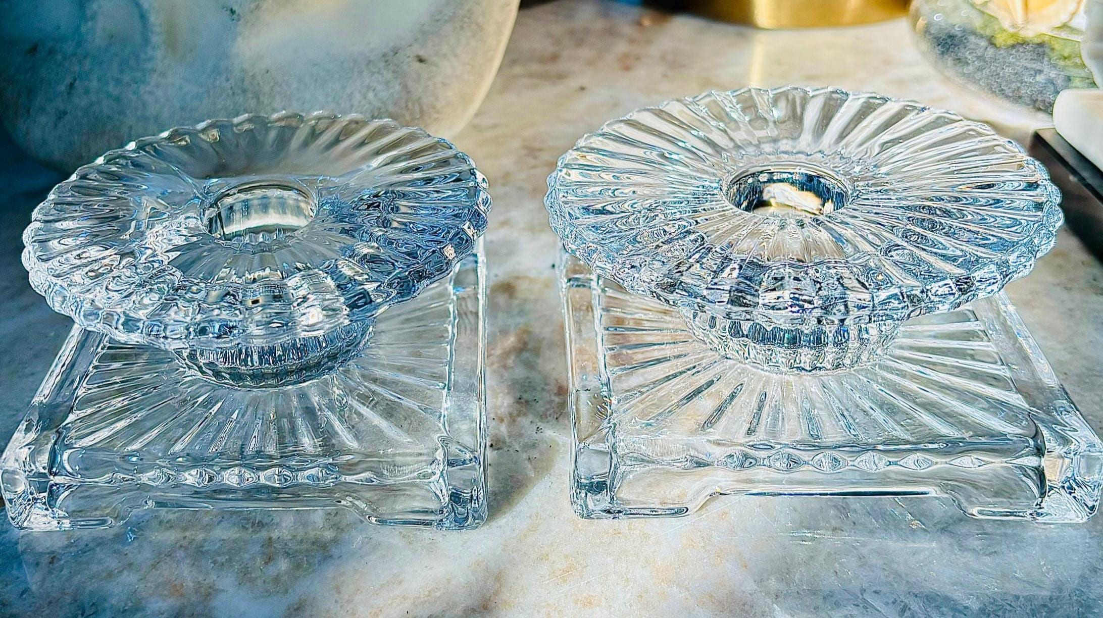 Beautiful antique crystal candleholders, in the “Ridgeleigh” design, circa 1935.