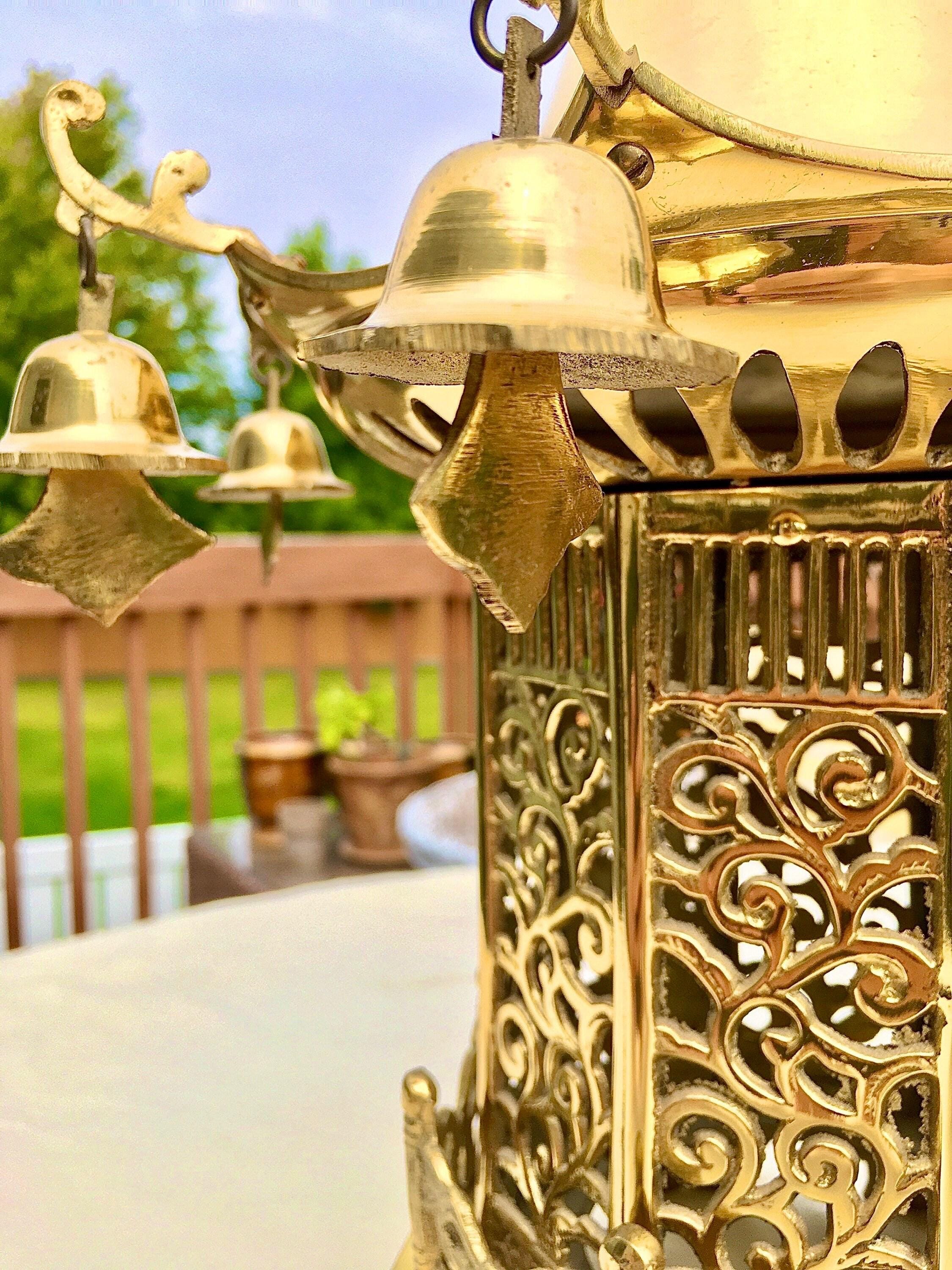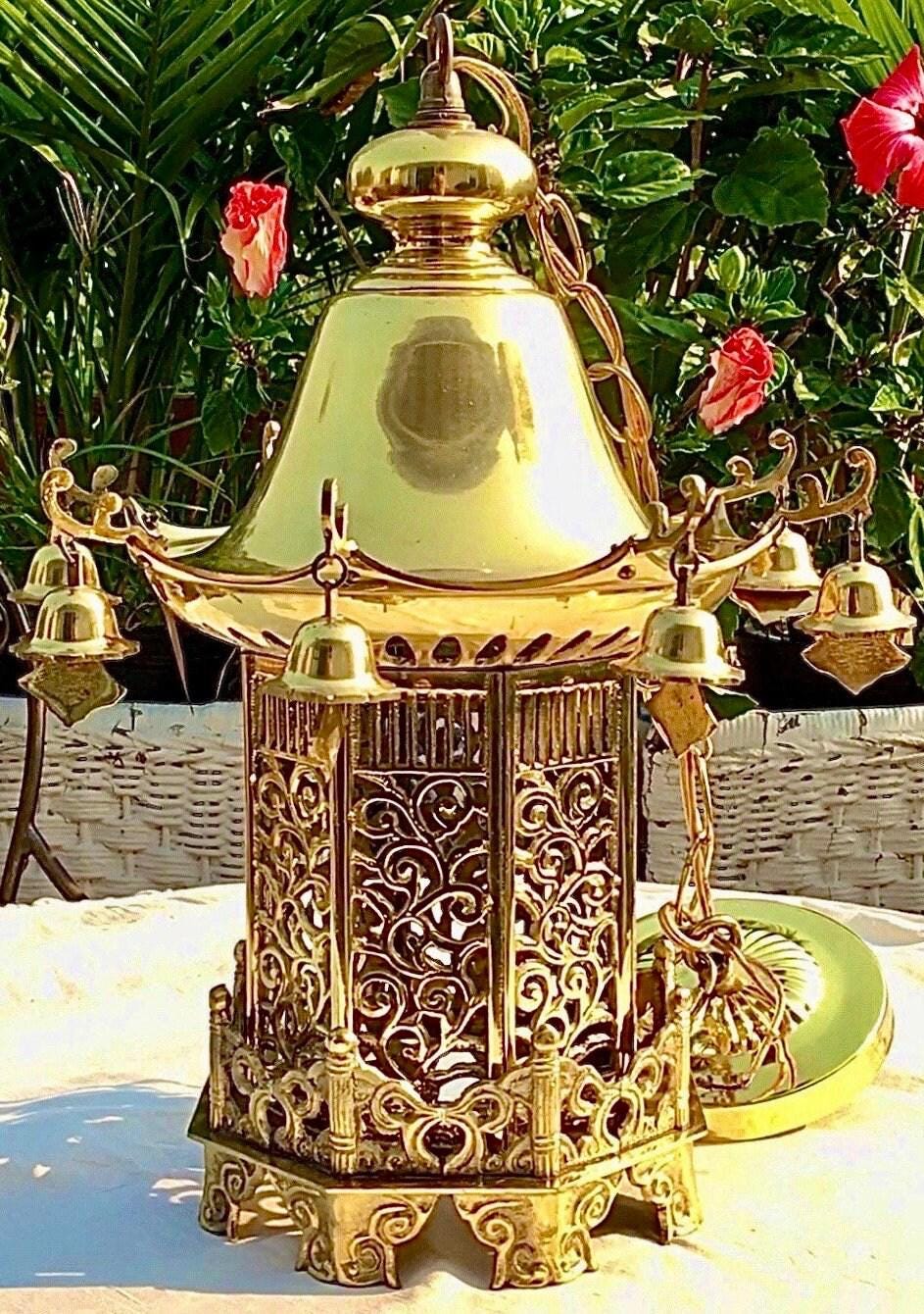 This Magnificent pristine solid brass Pagoda pendant light once graced the foyer of an estate home in Musical Hills, Crescent Iowa.