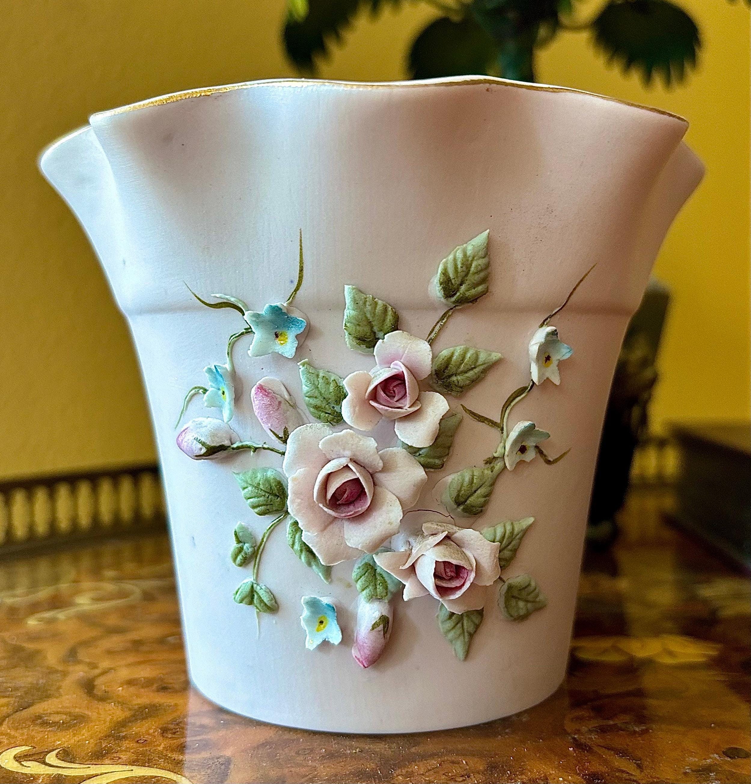A waltz of flowers in this vintage flowerpot, by Lefton China.