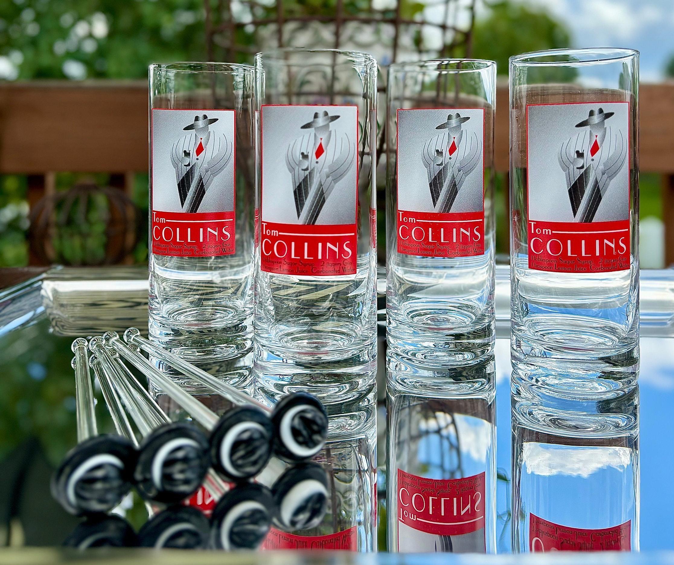 Glasses include the retro recipe for the scrumptious Tom Collins...