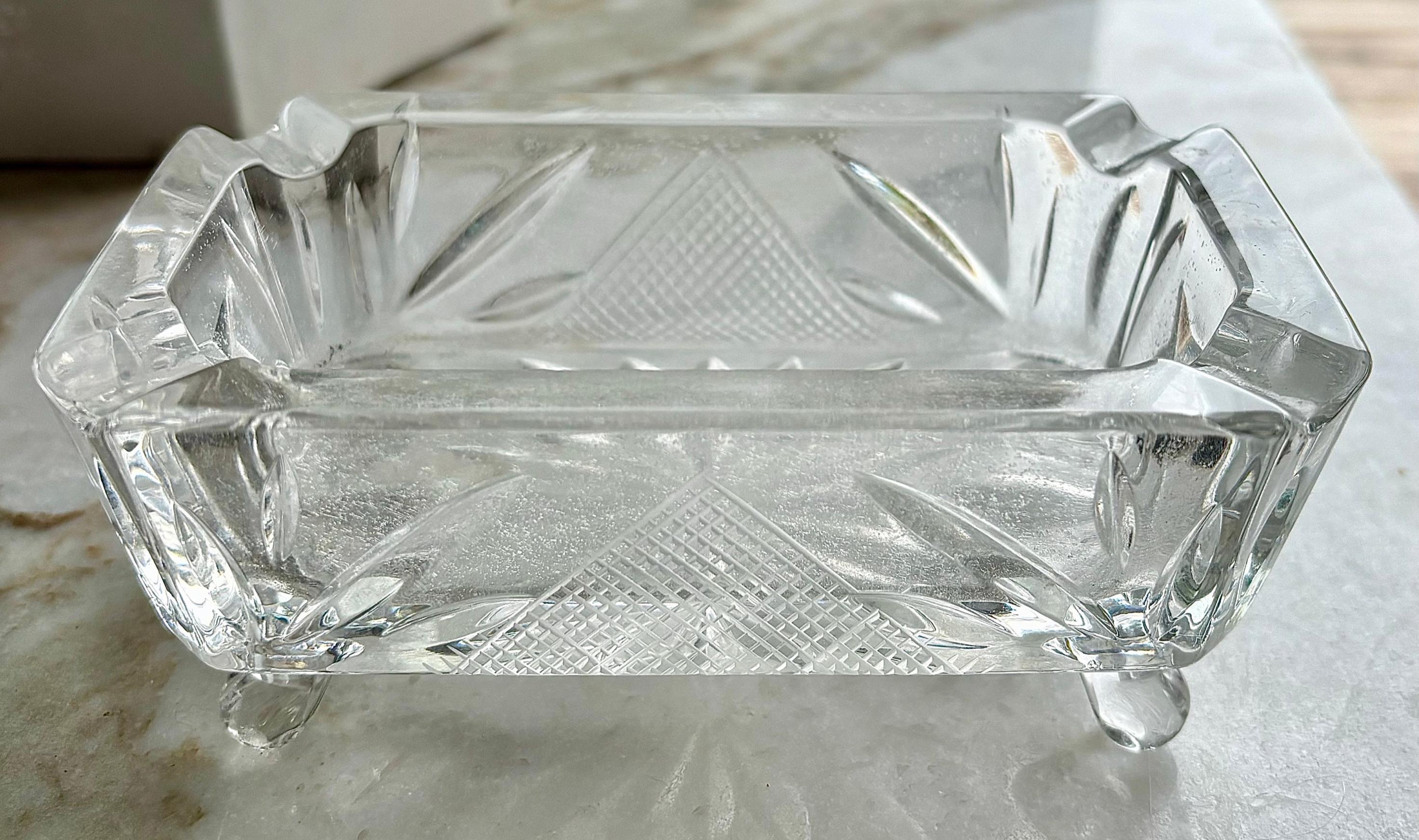 This crystal ashtray would make a beautiful antique soap dis, or vessel for bedside trinkets & jewelry.
