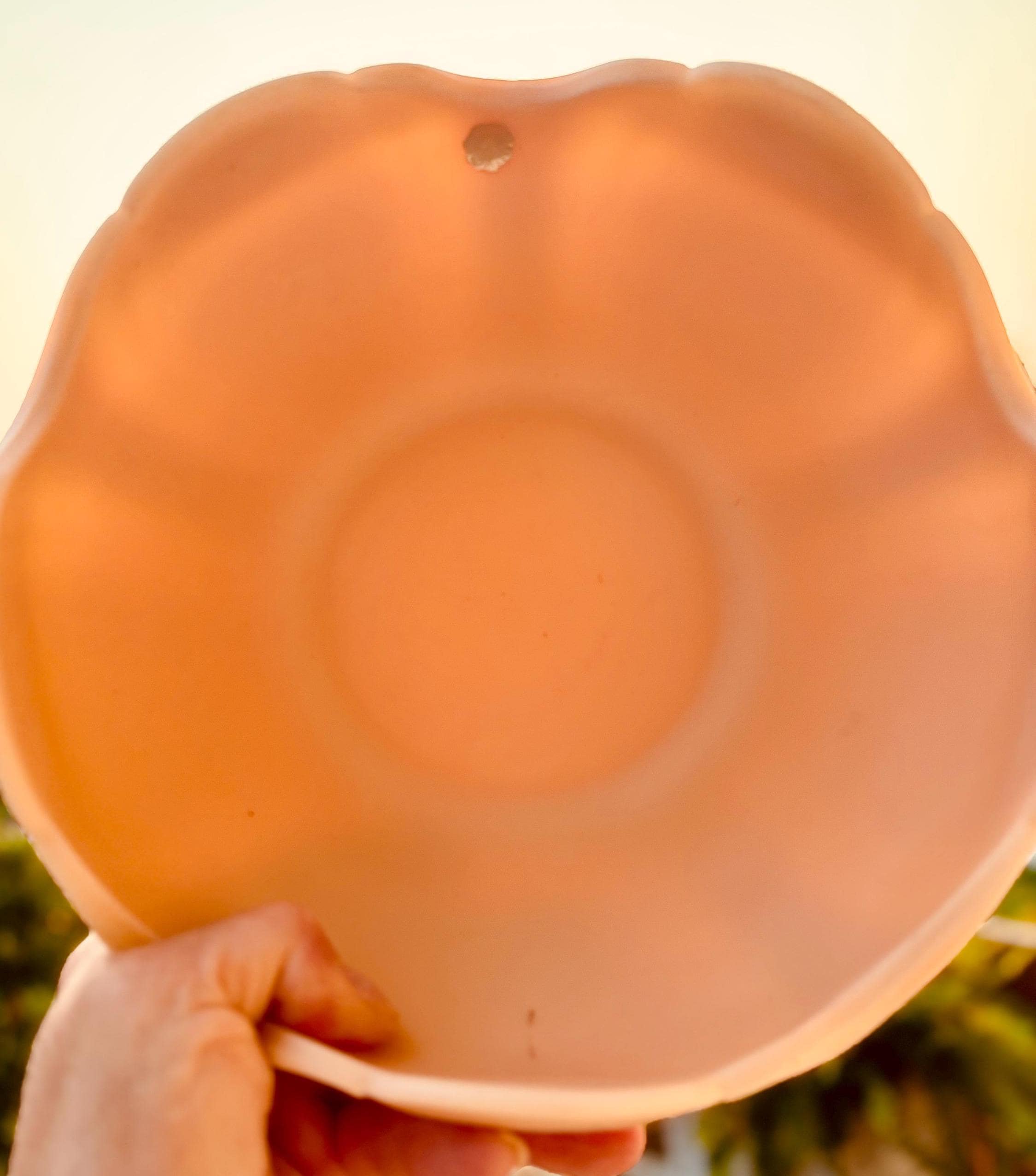 The color is a serene & dreamy peach, with a vein of almond surrounding the base.