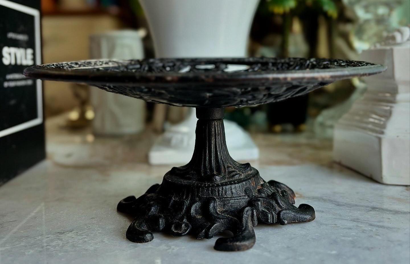 This highly ornate cast iron compote or Tazza, is created by Robert Emig.