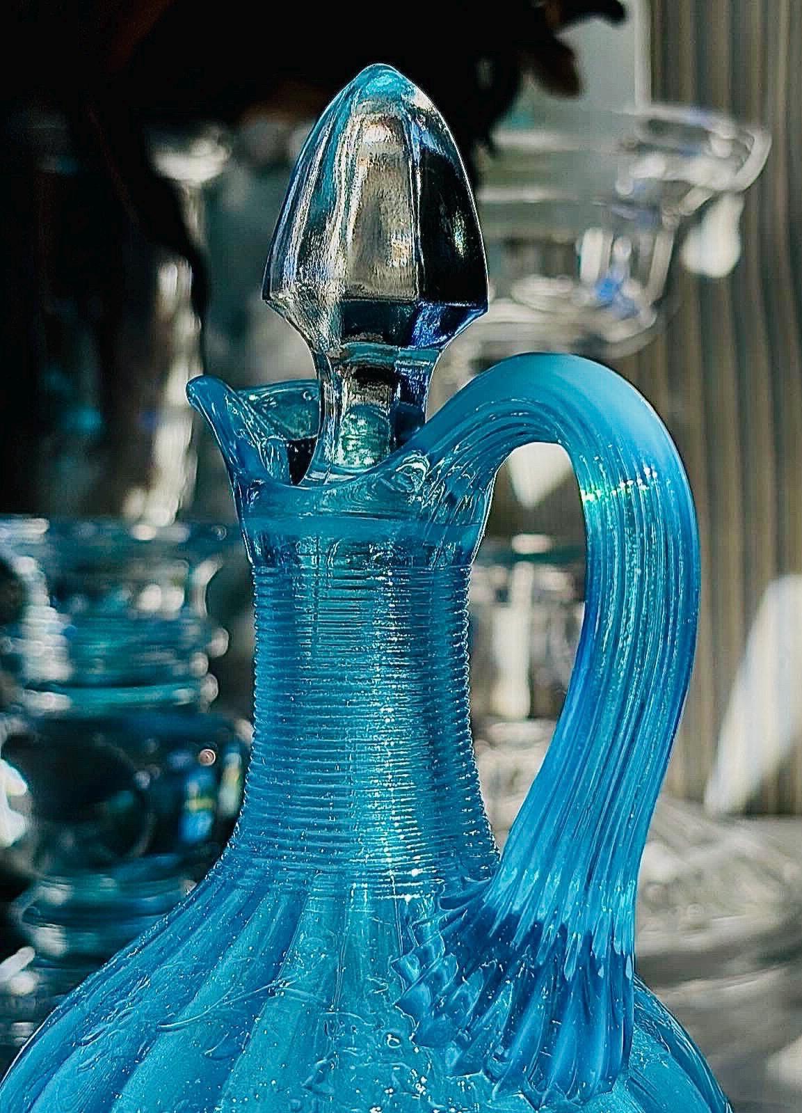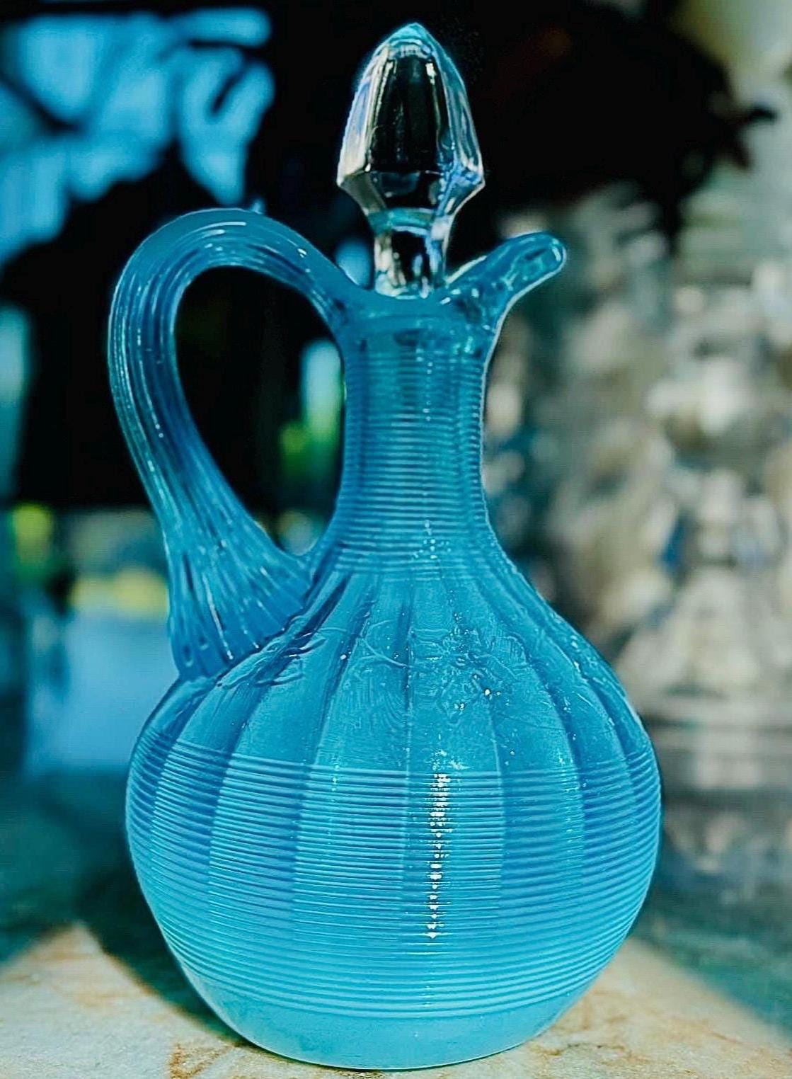 Antique Northwood Glass, intaglio, blue opalescent cruet.
