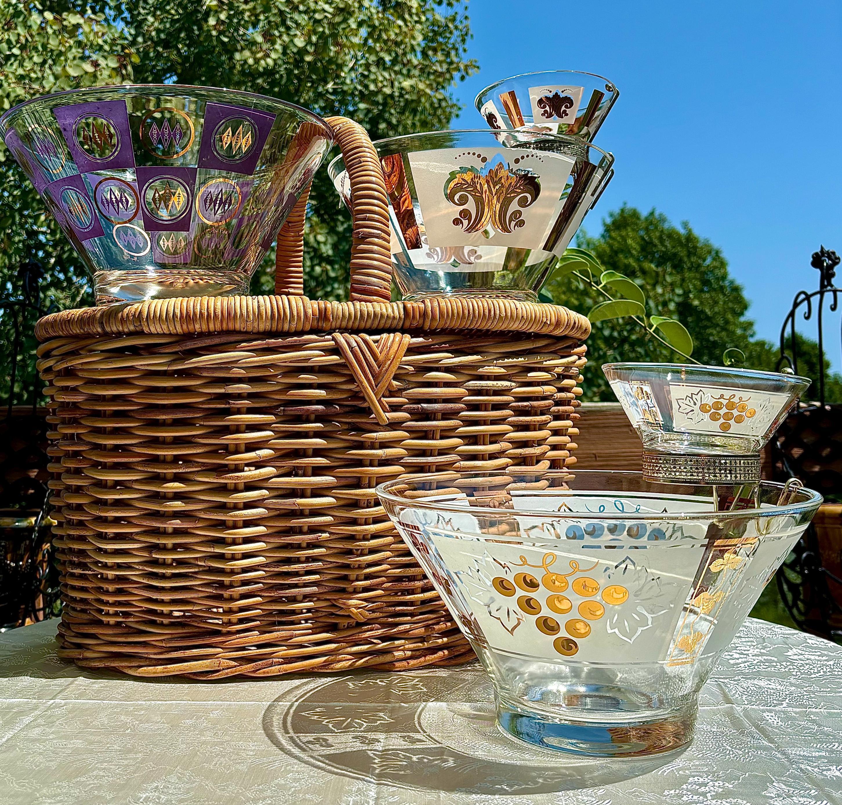 All adorned with 22k gold designs of grapes, fleur de lis, and an Atomic Argyle design.