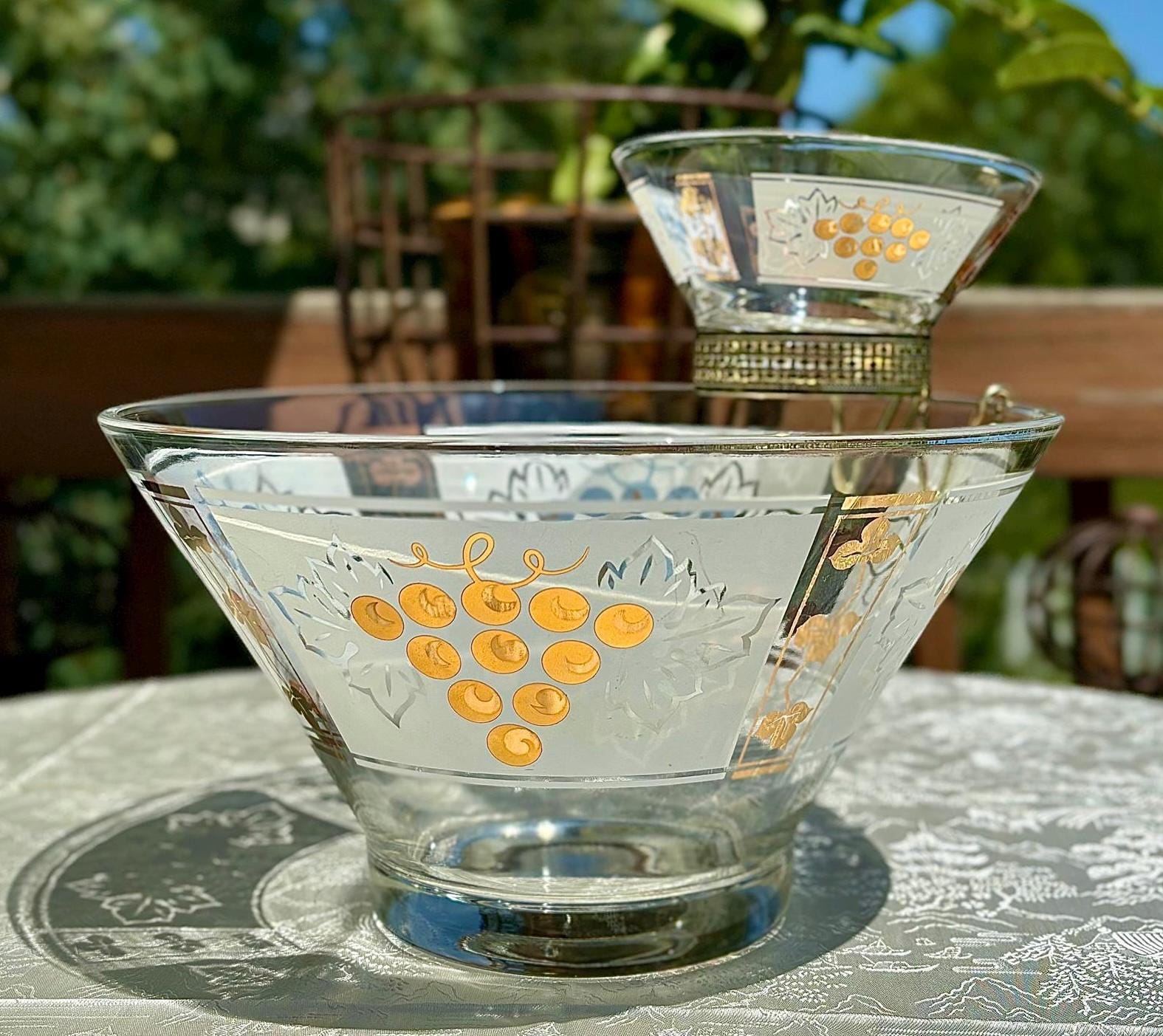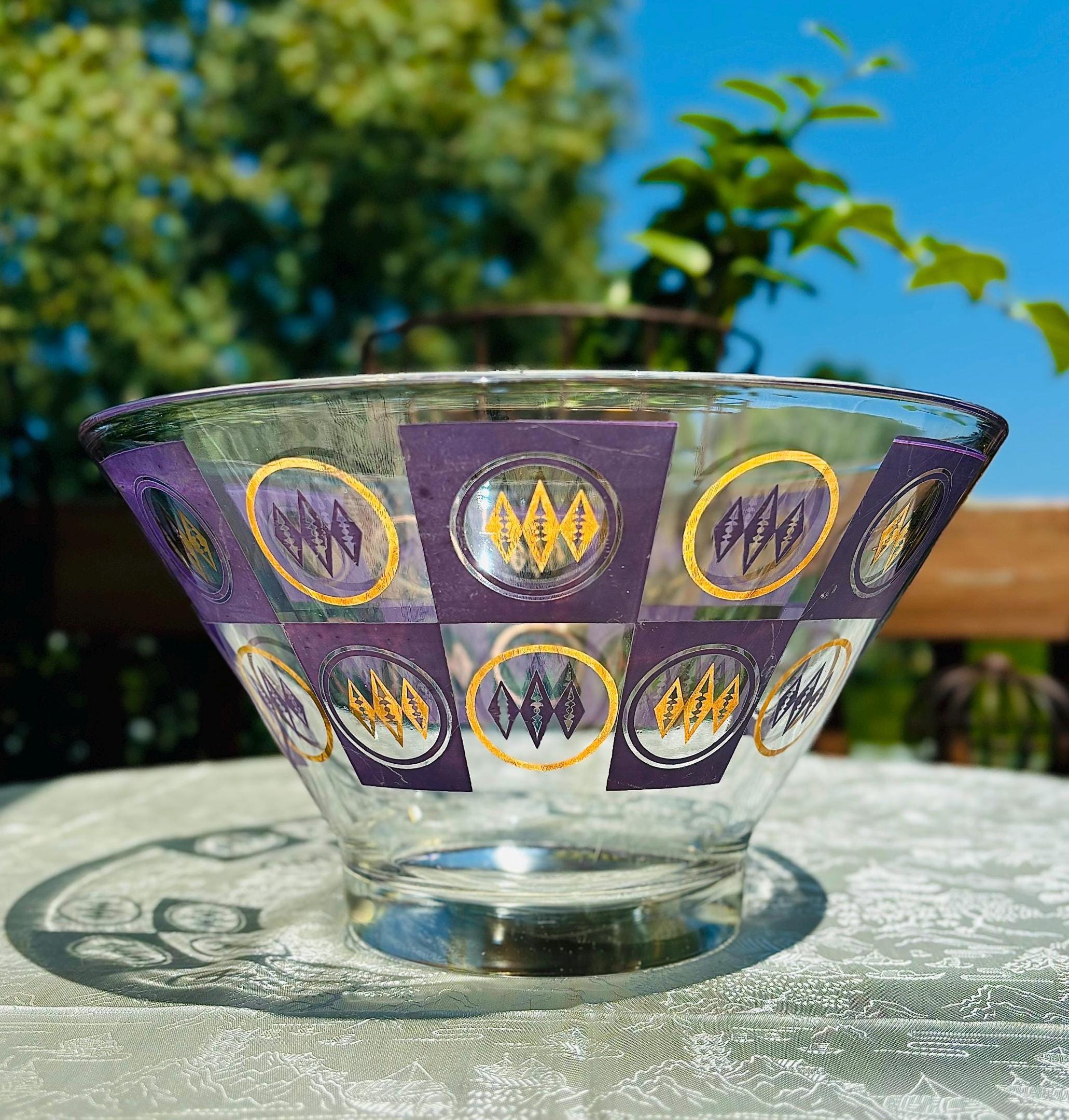 The single purple argyle & gold salad bowl, is by vintage Gay Fad.