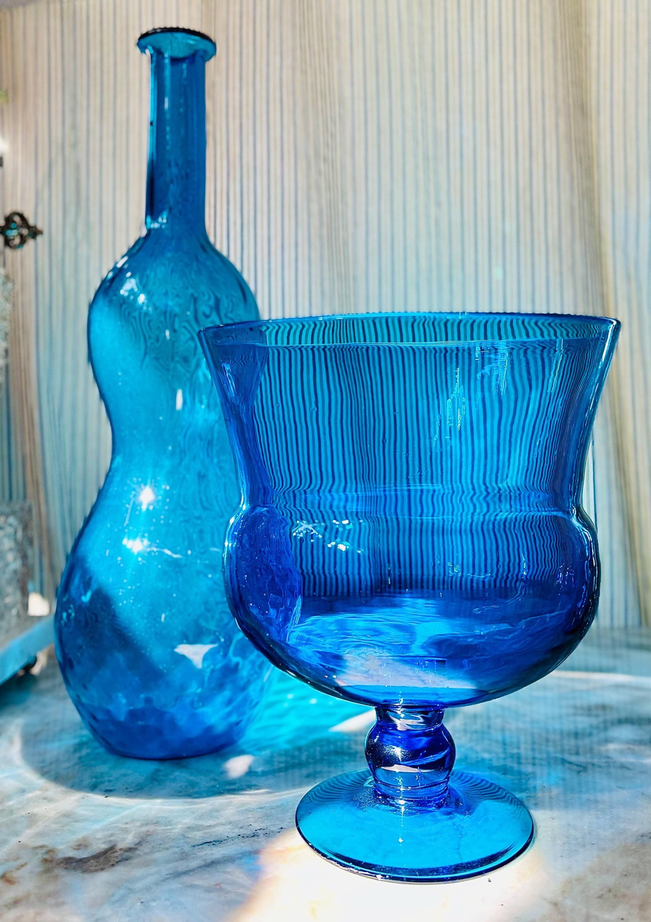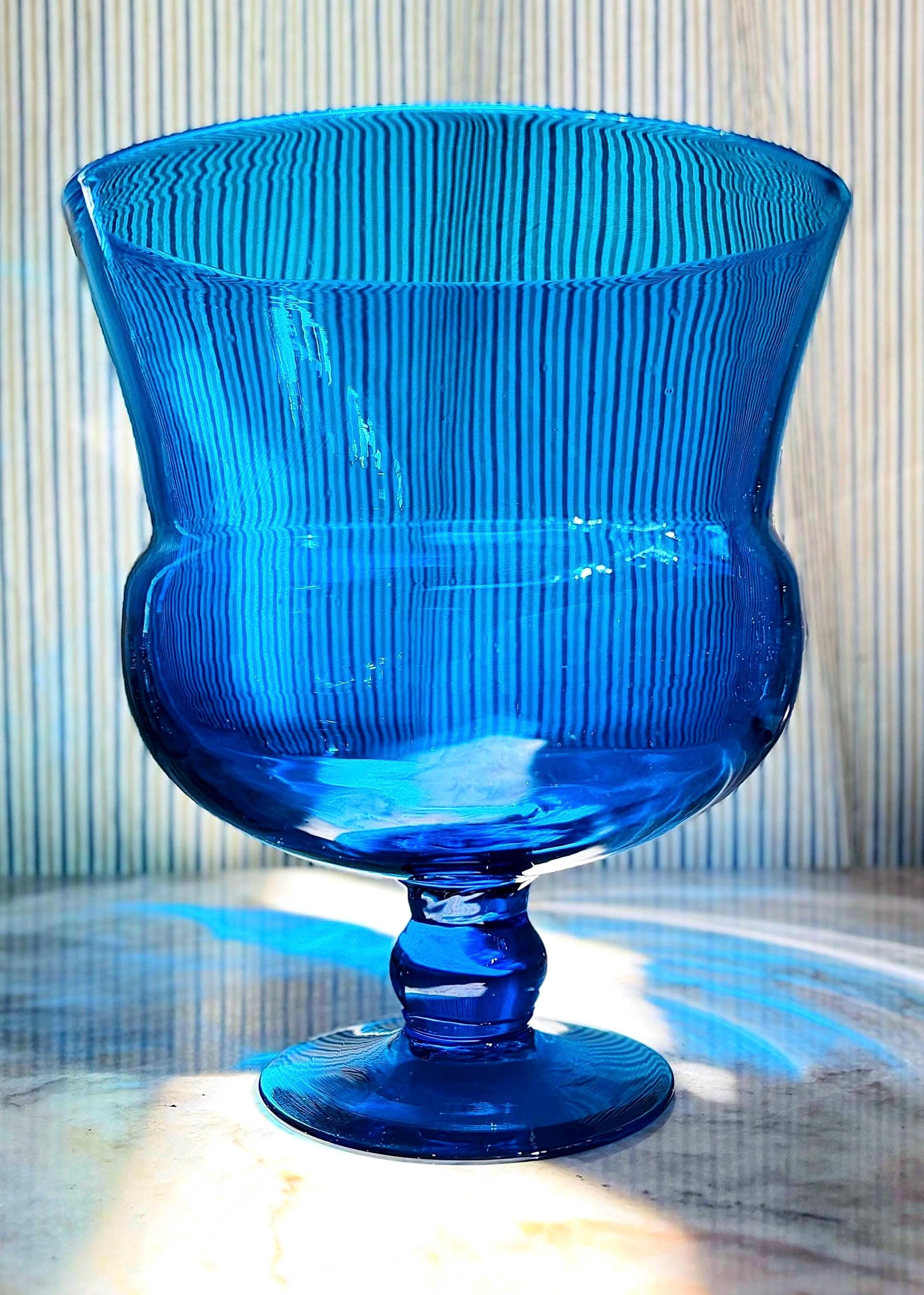 An incredibly captivating deep turquoise blue, Blenko, Footed Urn Vase. Believed to be from the pre-designer era, circa 1937-1957, in design #428.