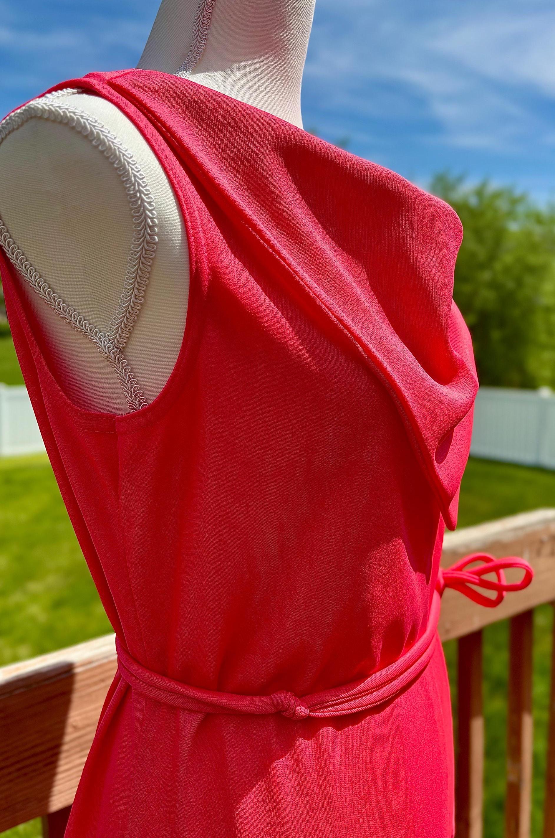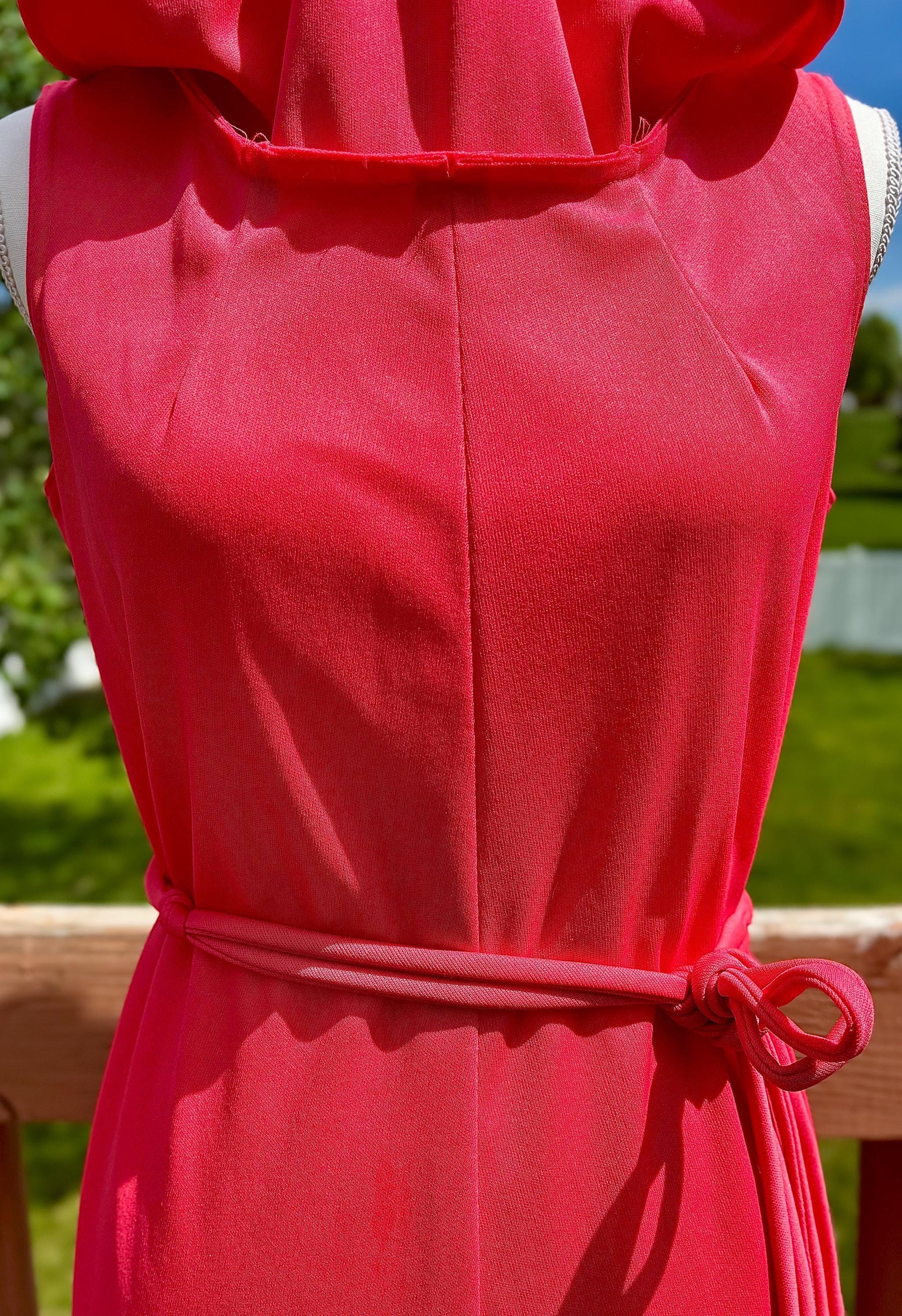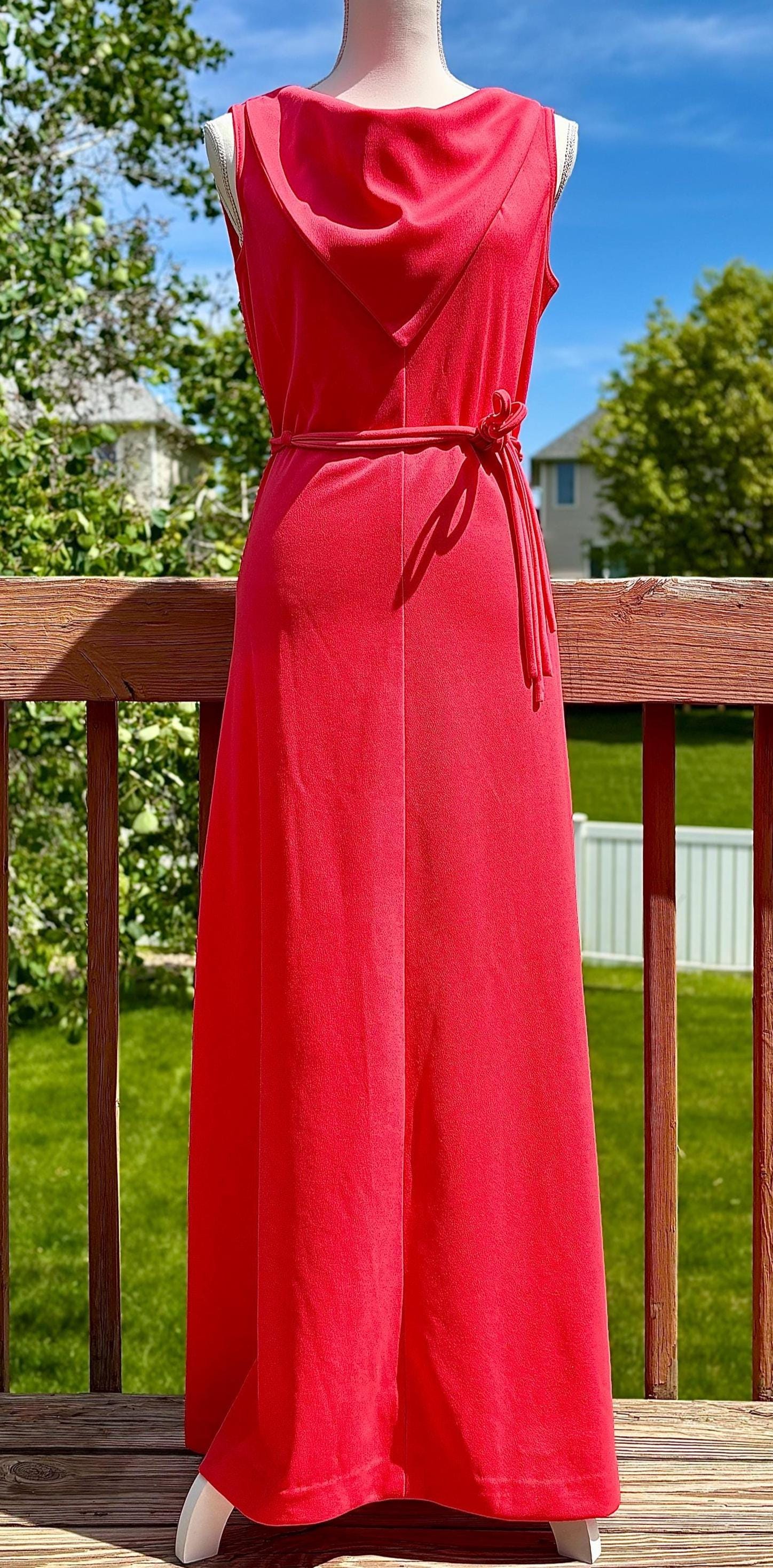 Gorgeous 1960’s-1970’s, Grecian coral jersey knit gown.