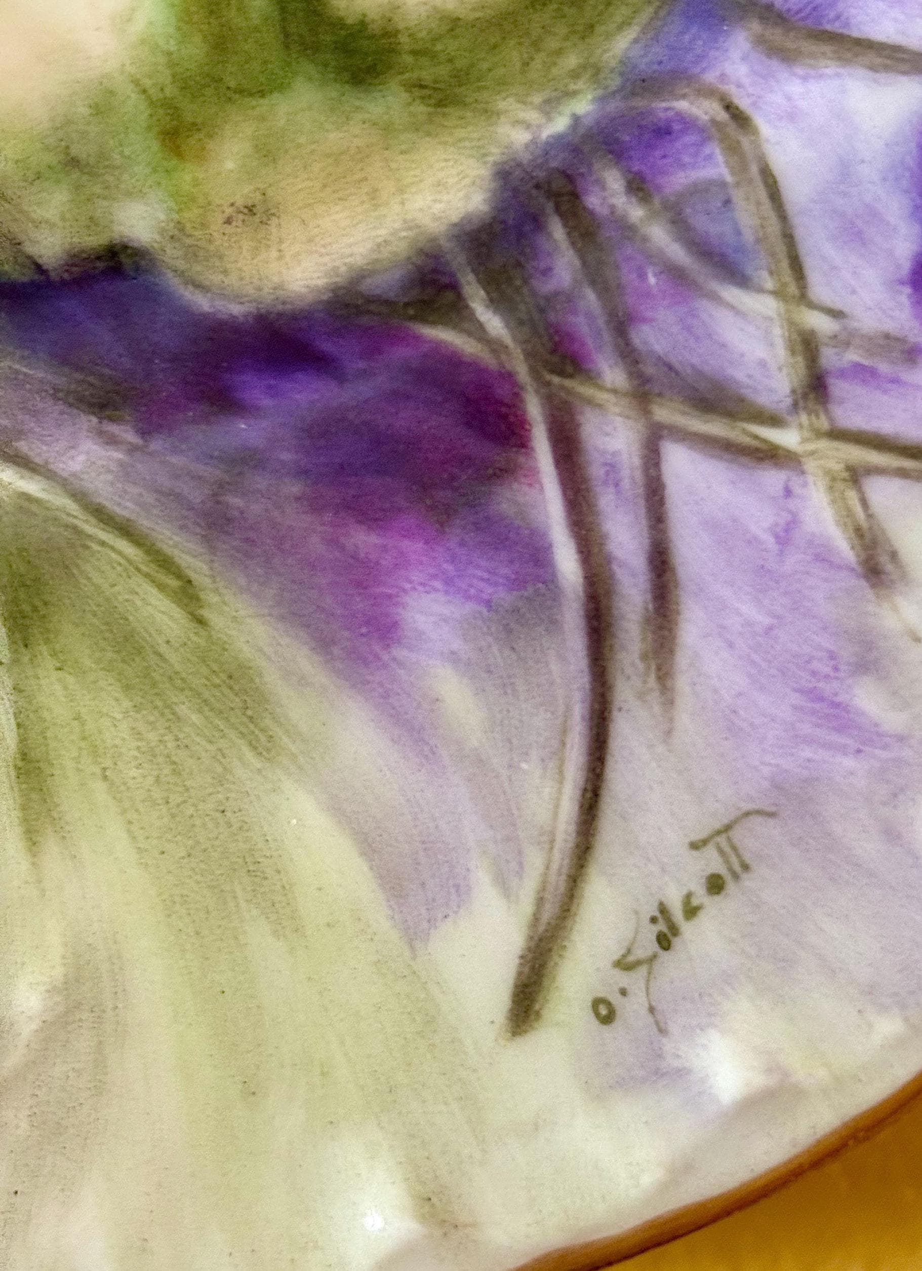 The contrasting green leaves, buttery yellows, and Frenchl lavender makes this antique Limoges plate pop!