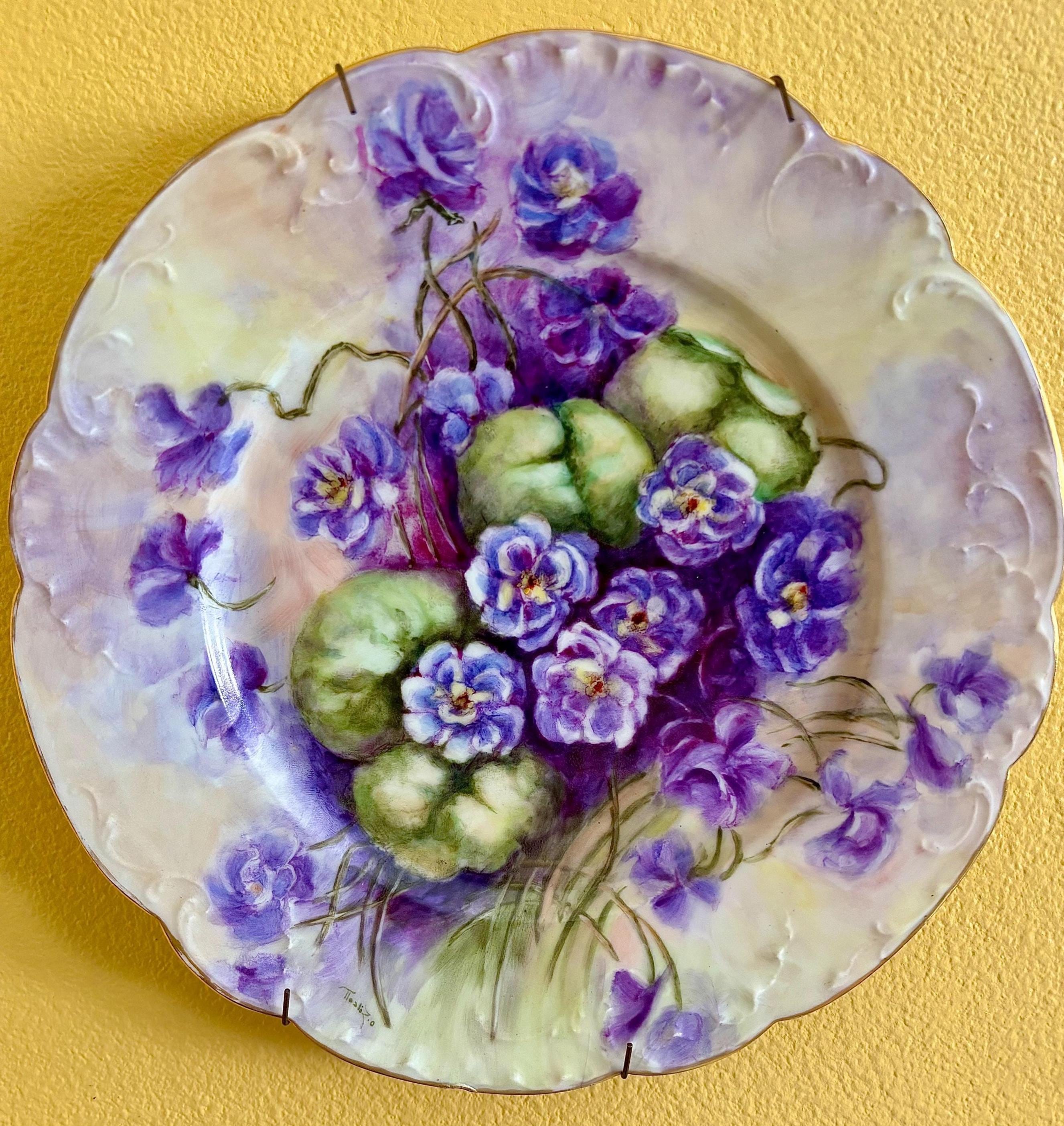 Divine hand painted violets burst from this antique plate!
