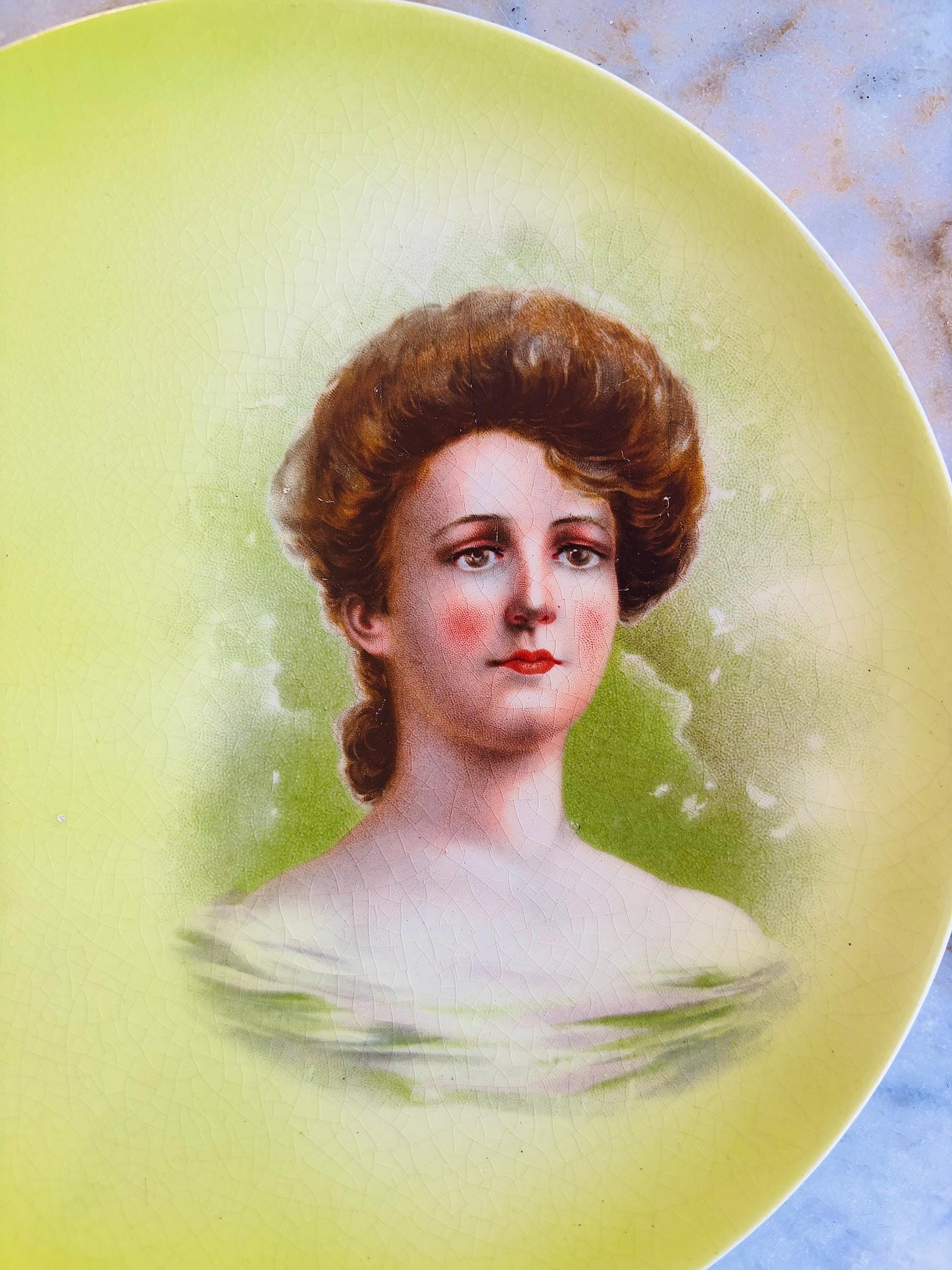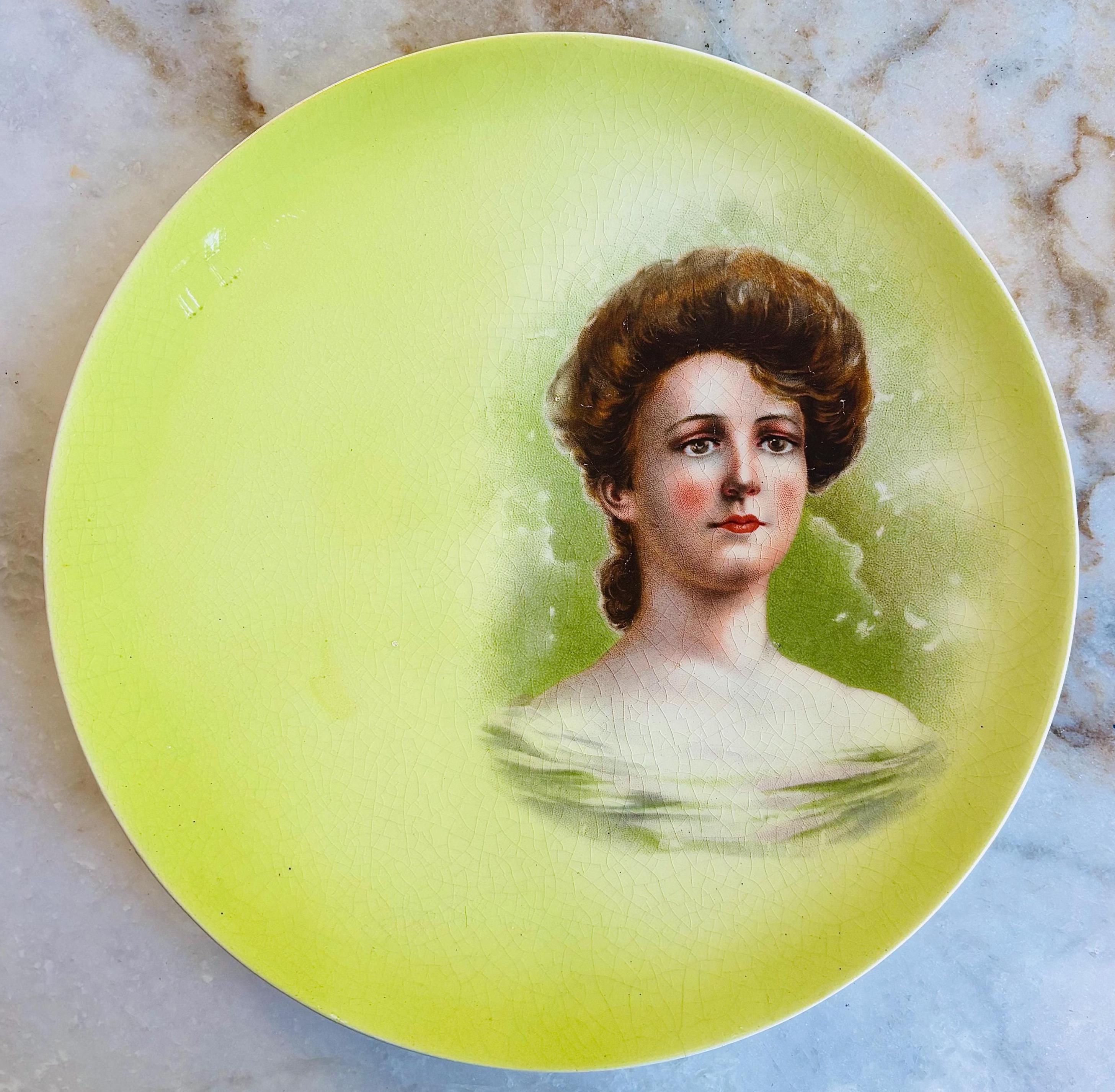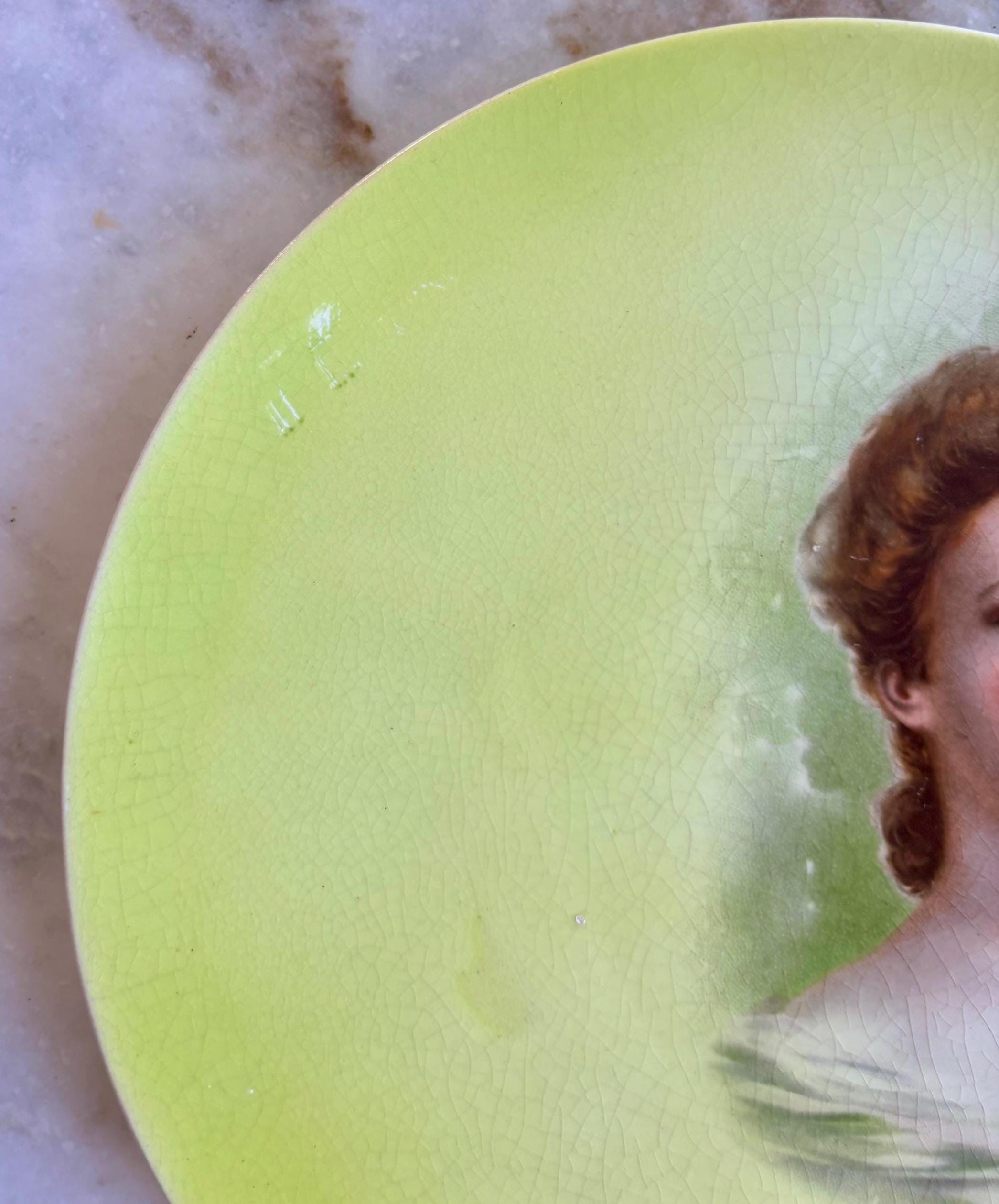 Magnificent Antique French, hand painted, crackle portrait plate.