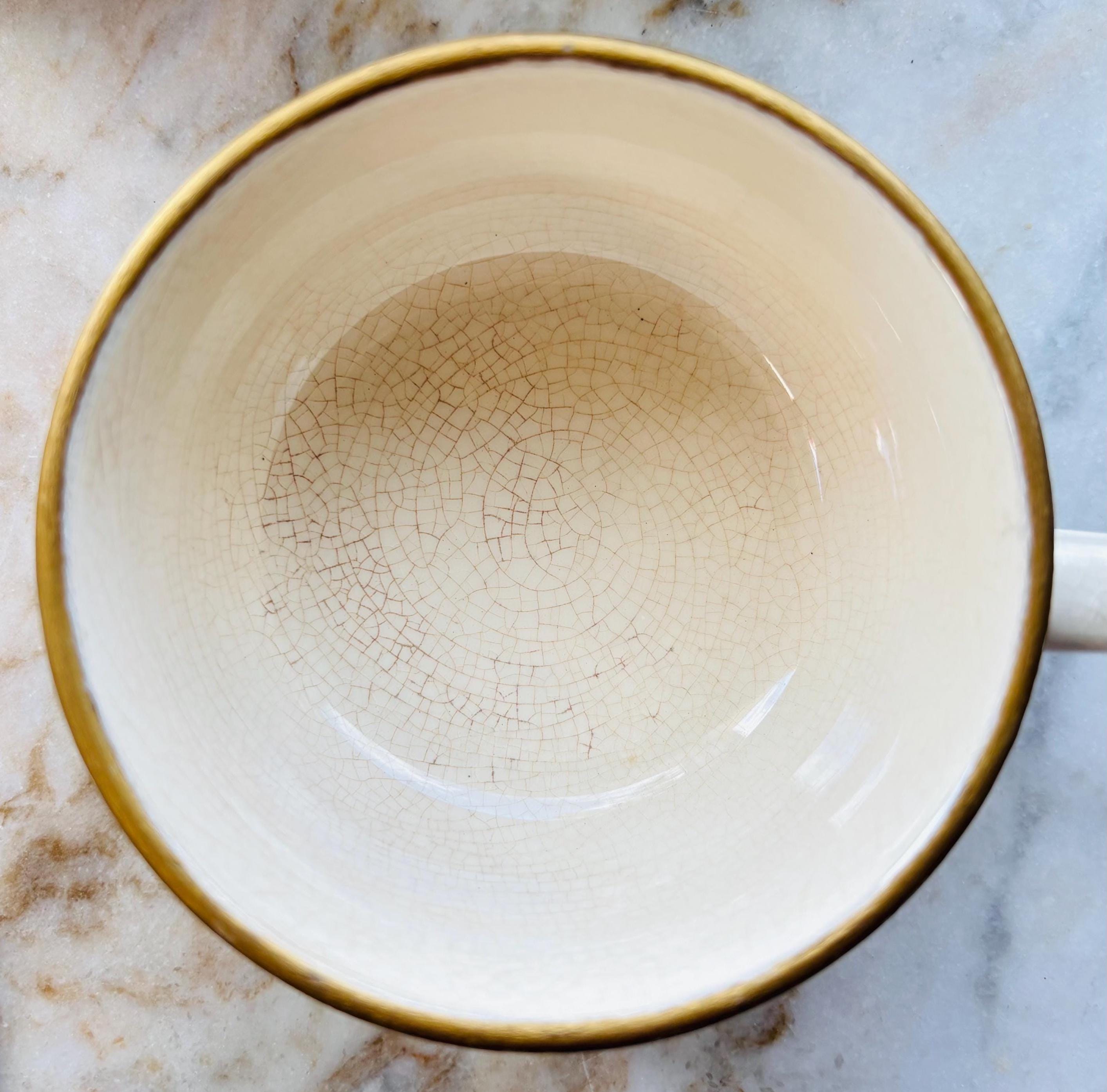 In gorgeous condition, minimal wear, typical crazing in one cup, shown.