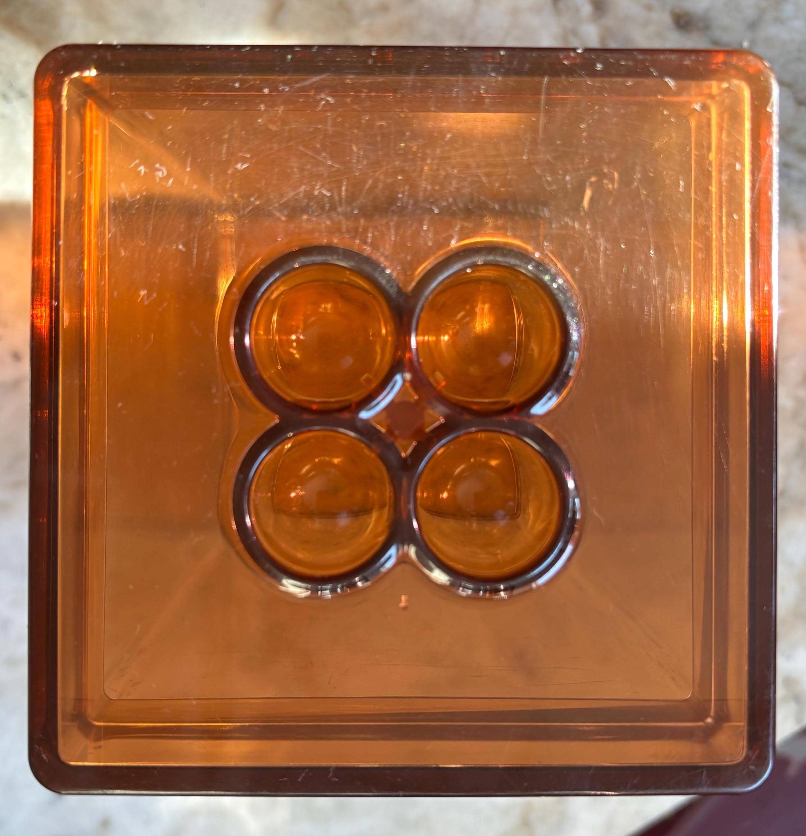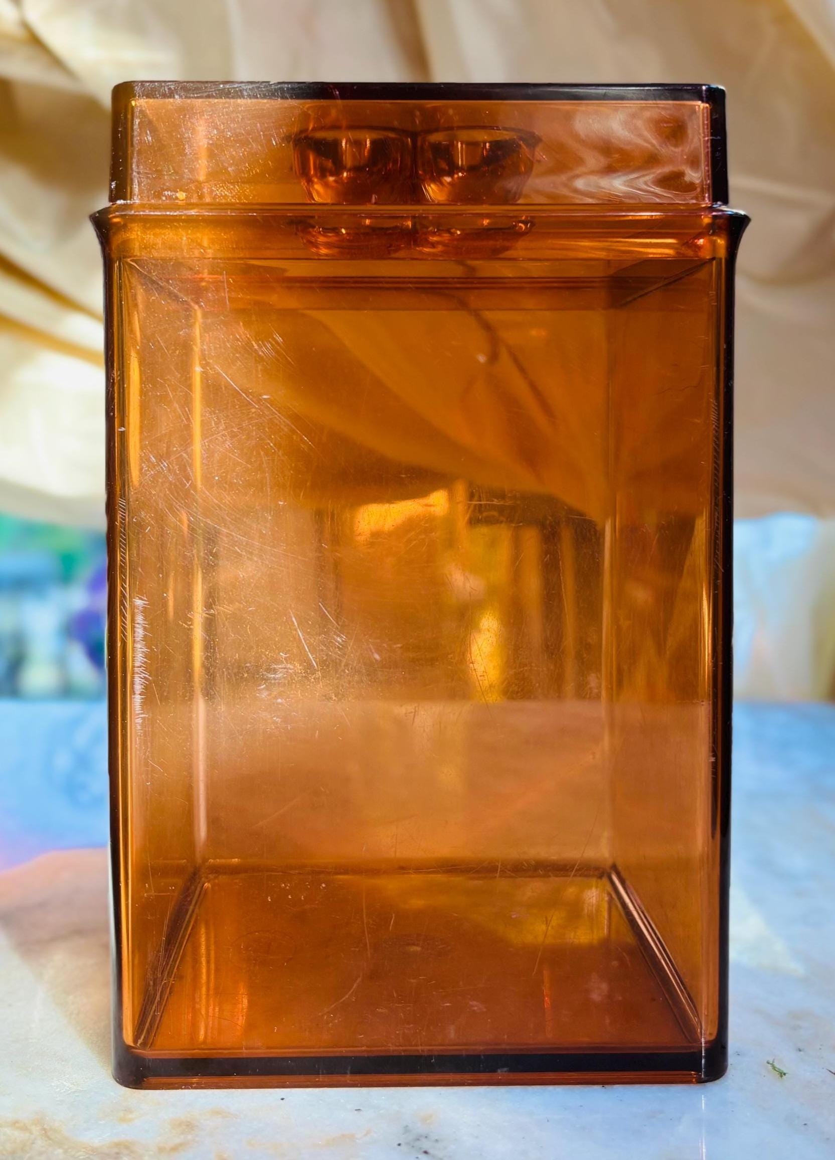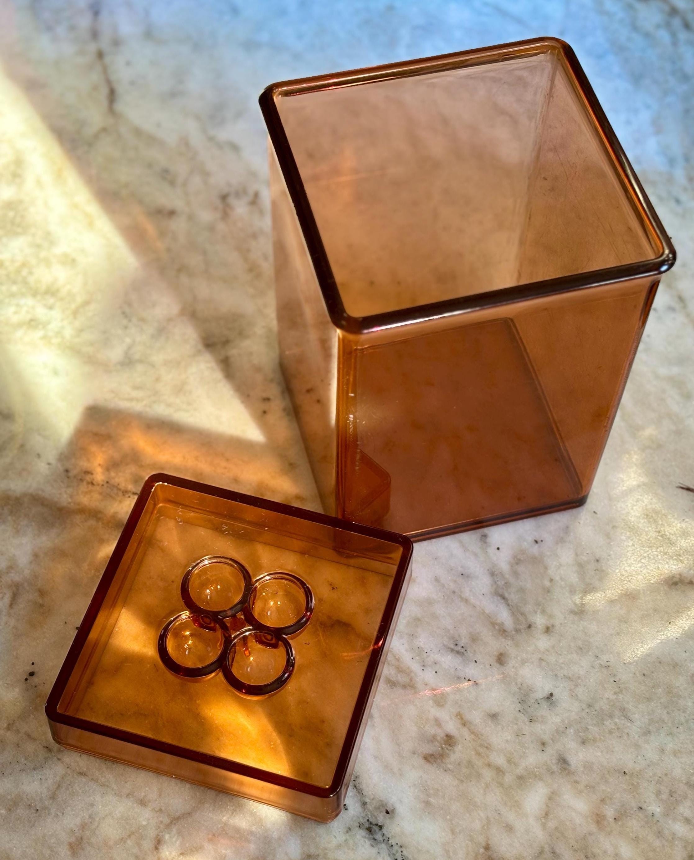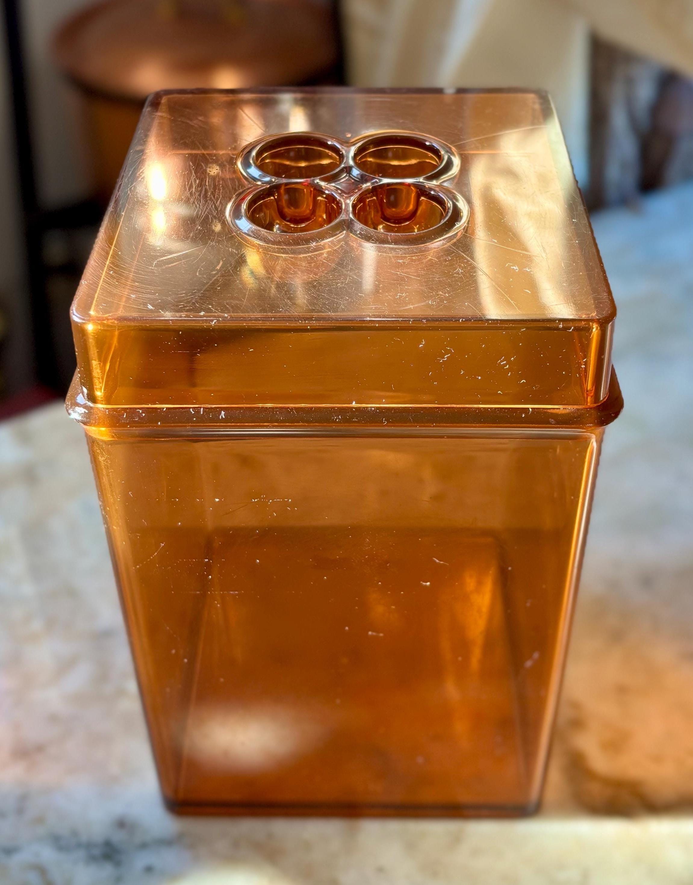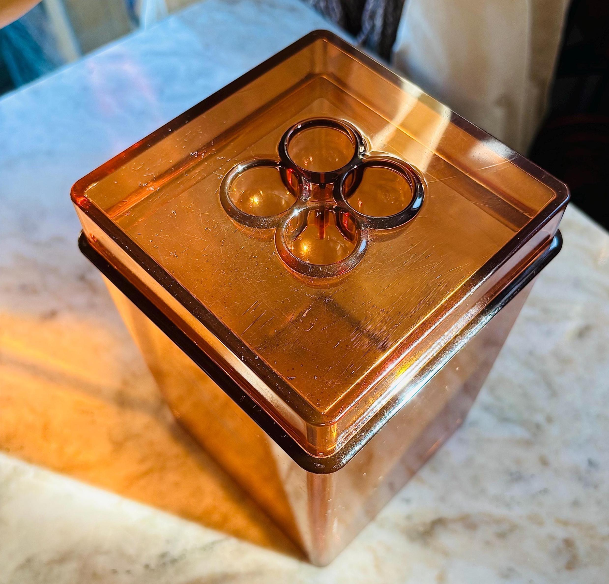 Mid-Century Gunner Cyren Scandinavia for Dansk, amber lucite storage container.