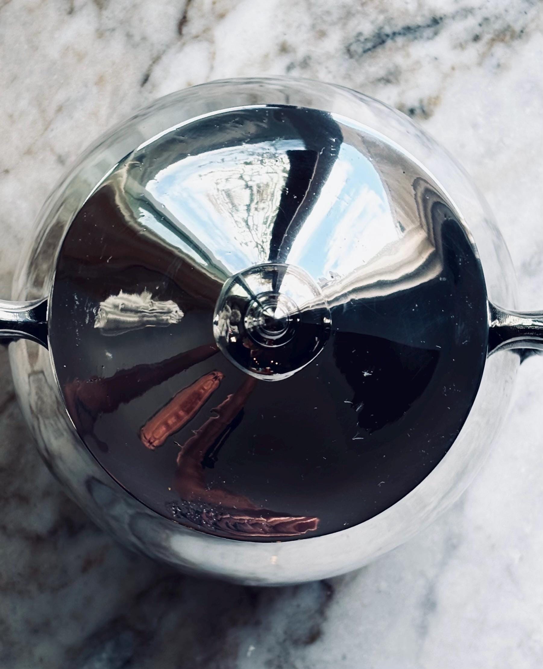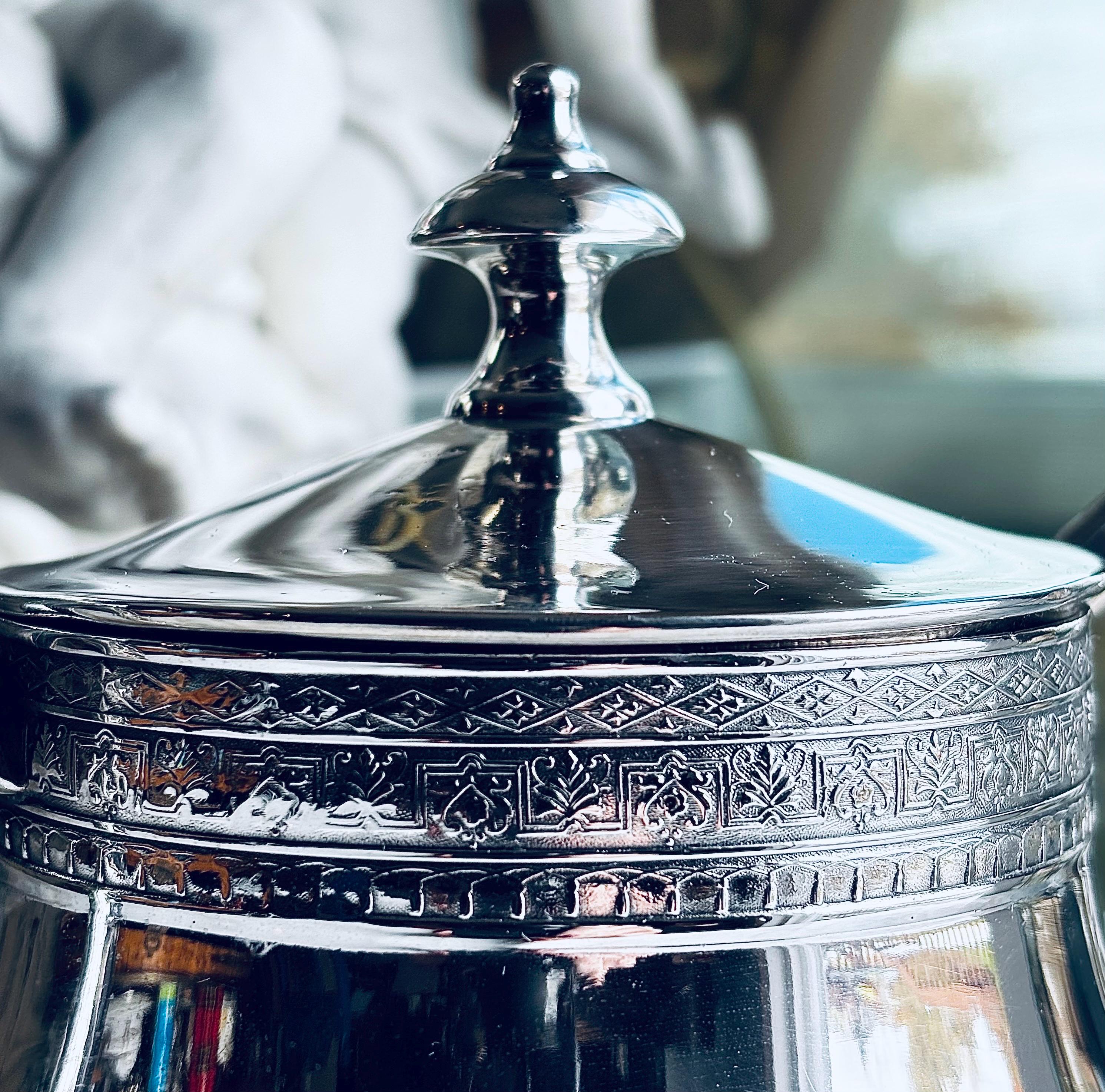 This pot belly sugar bowl has stunning Art Deco motif’s.