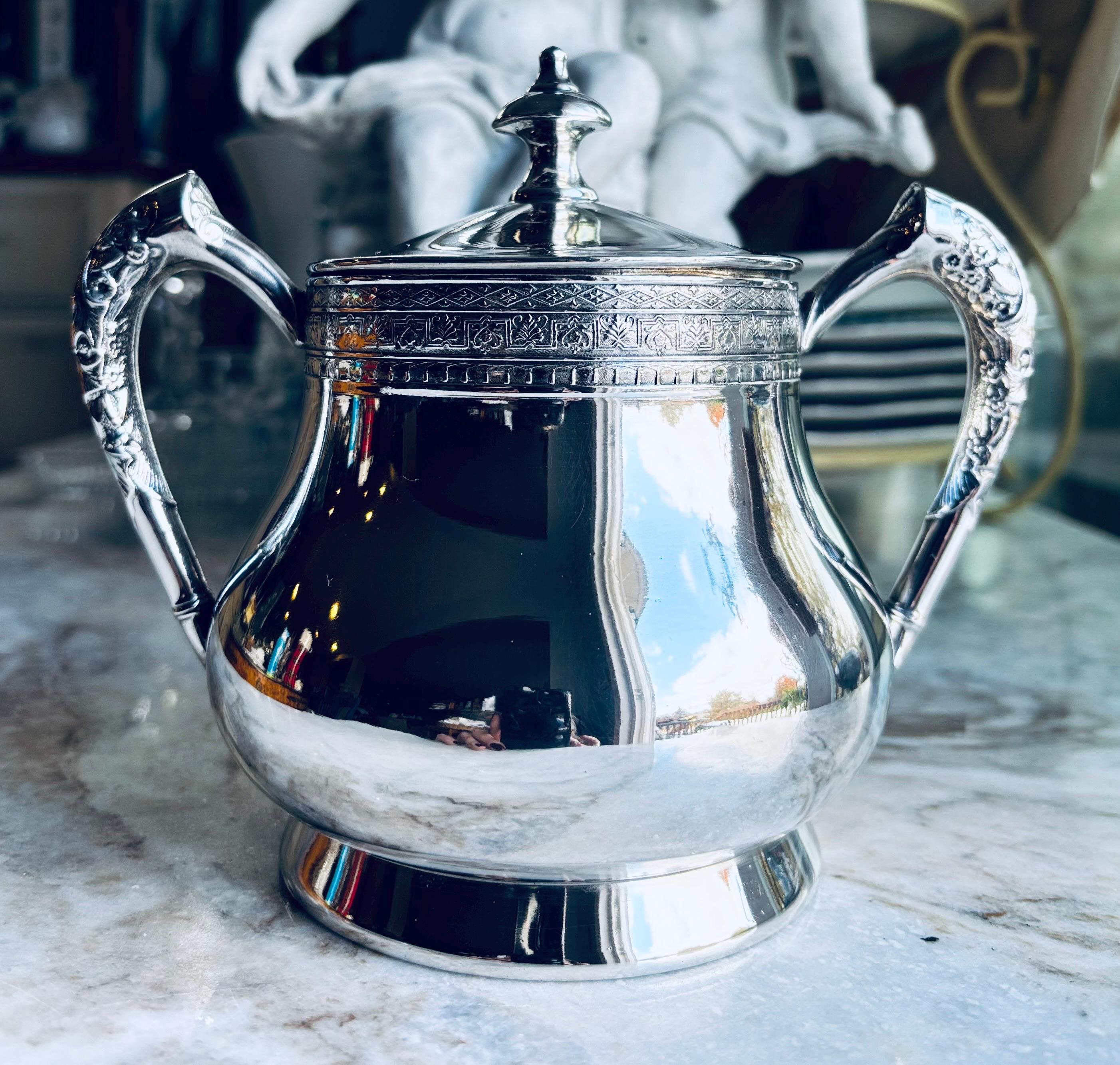 Antique Deco E.G. Webster Quadruple Plate Sugar Bowl.