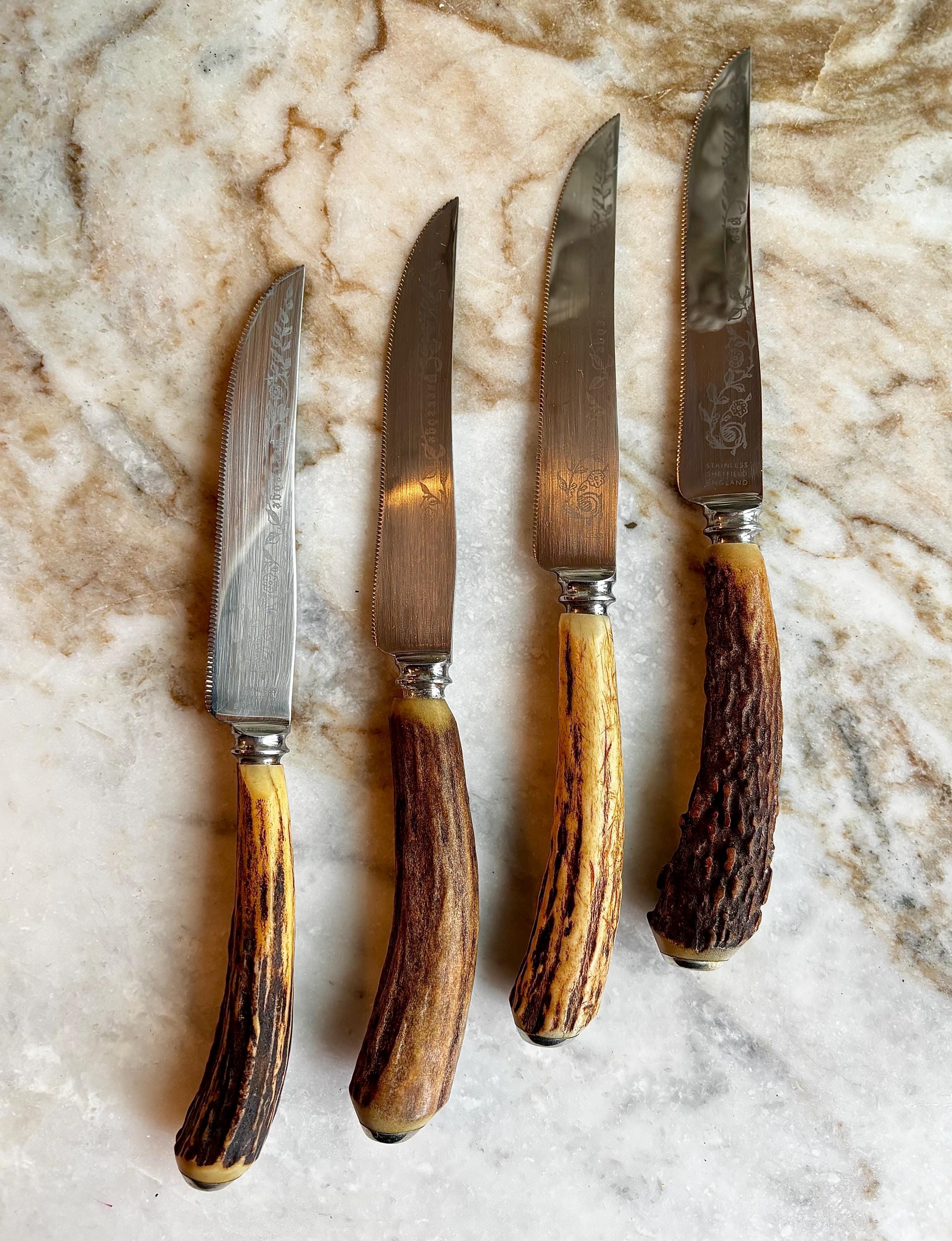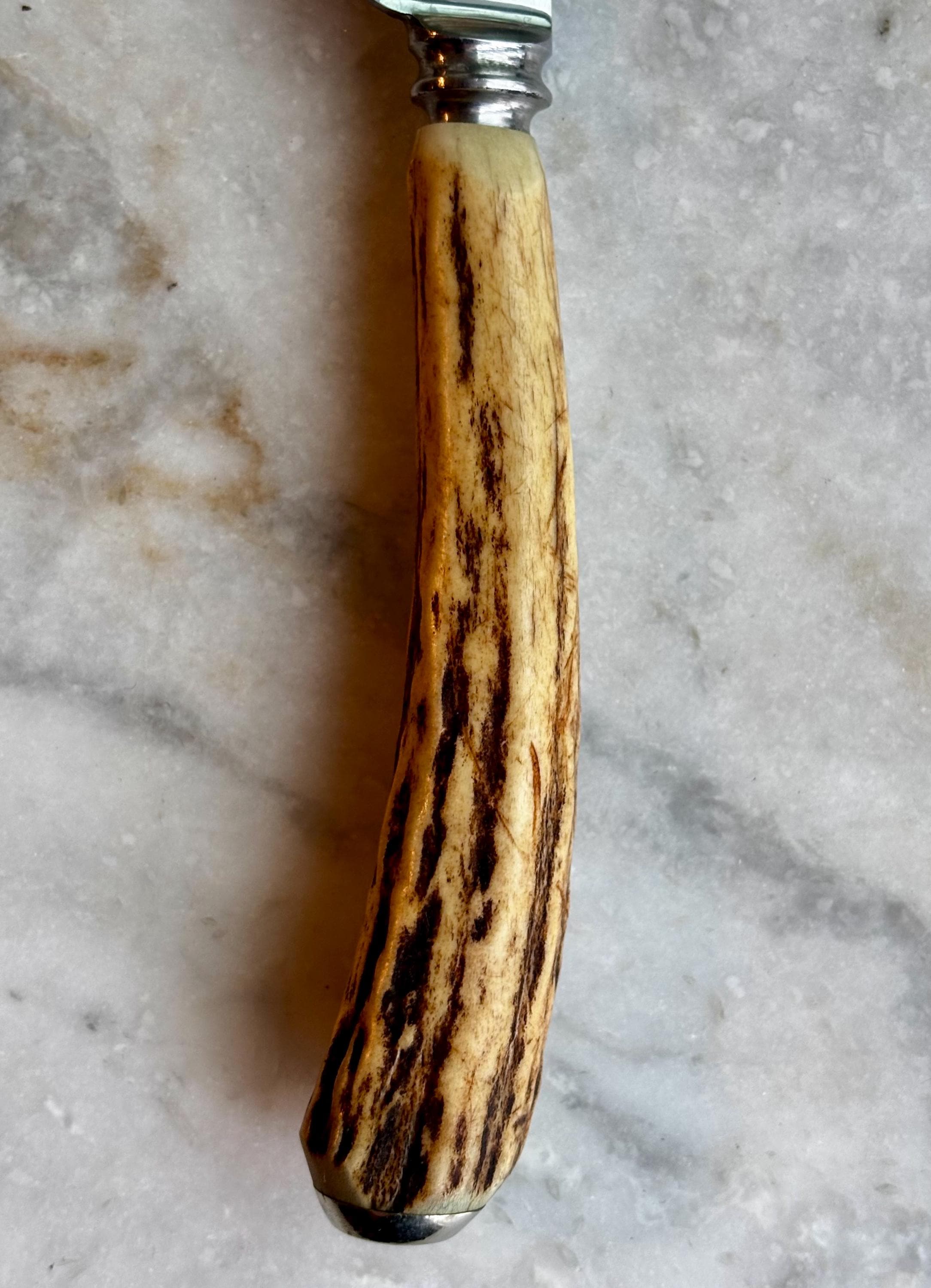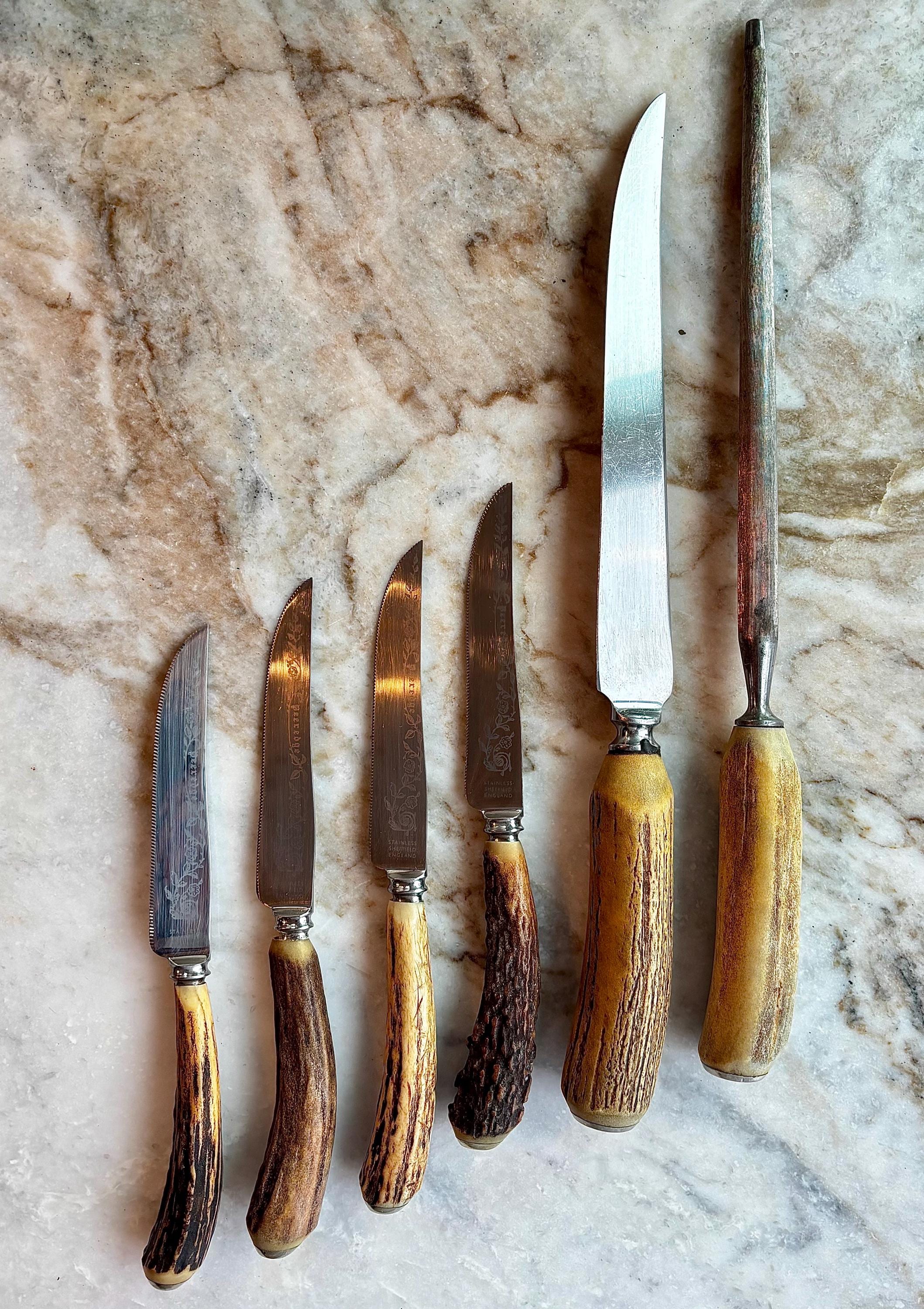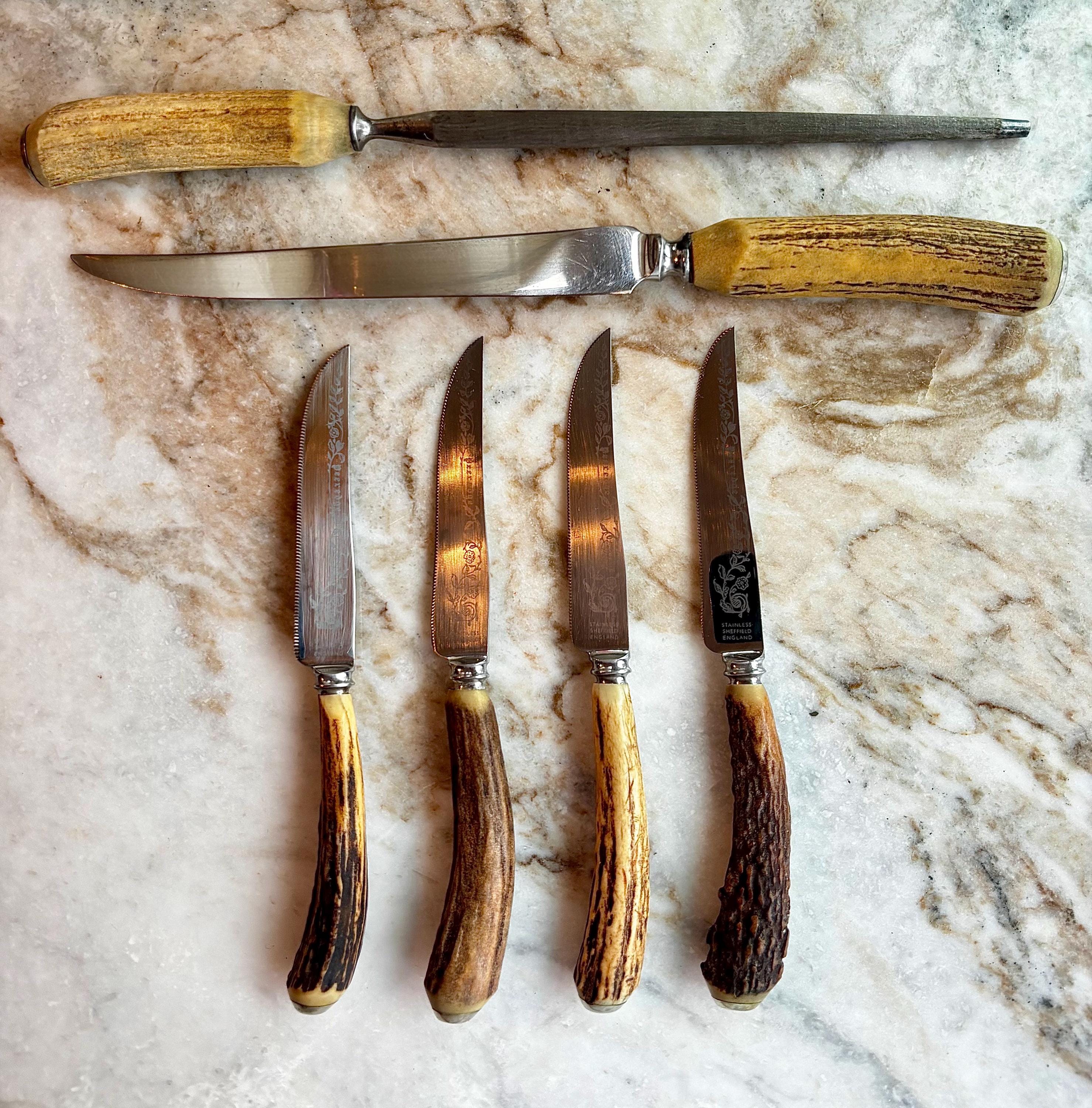 Buck up! We have another genuine, antique Staghorn carving set and steak knives.