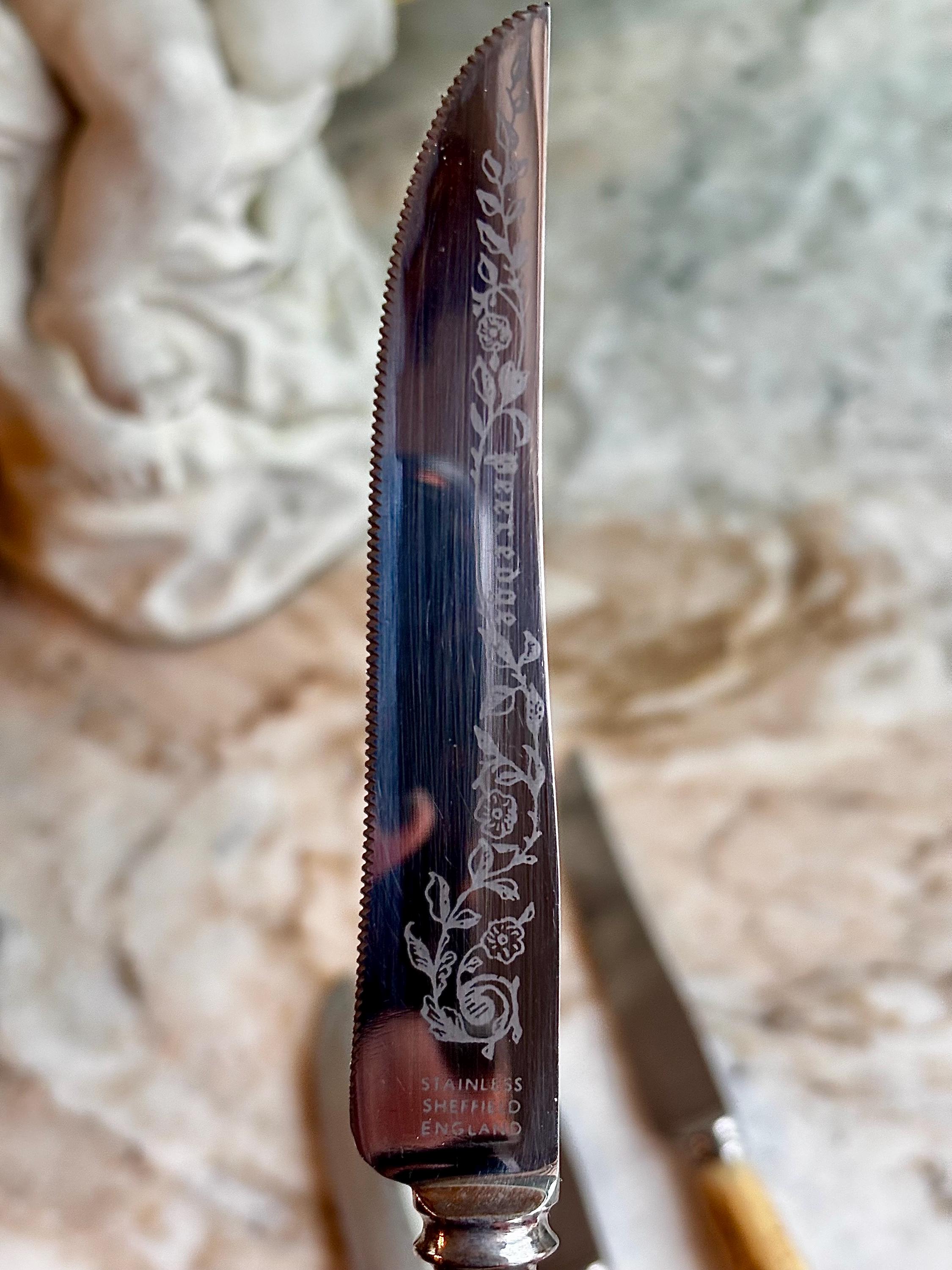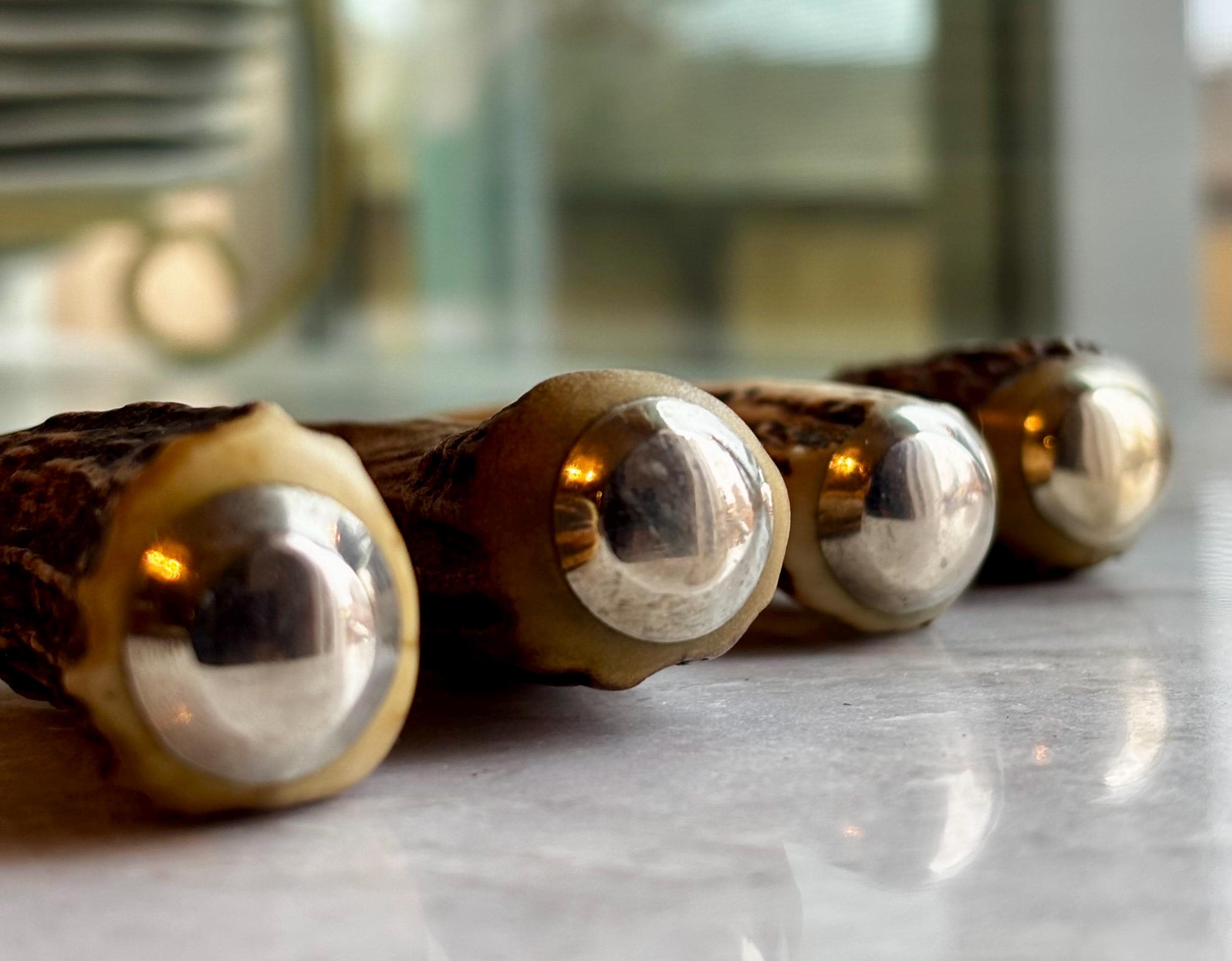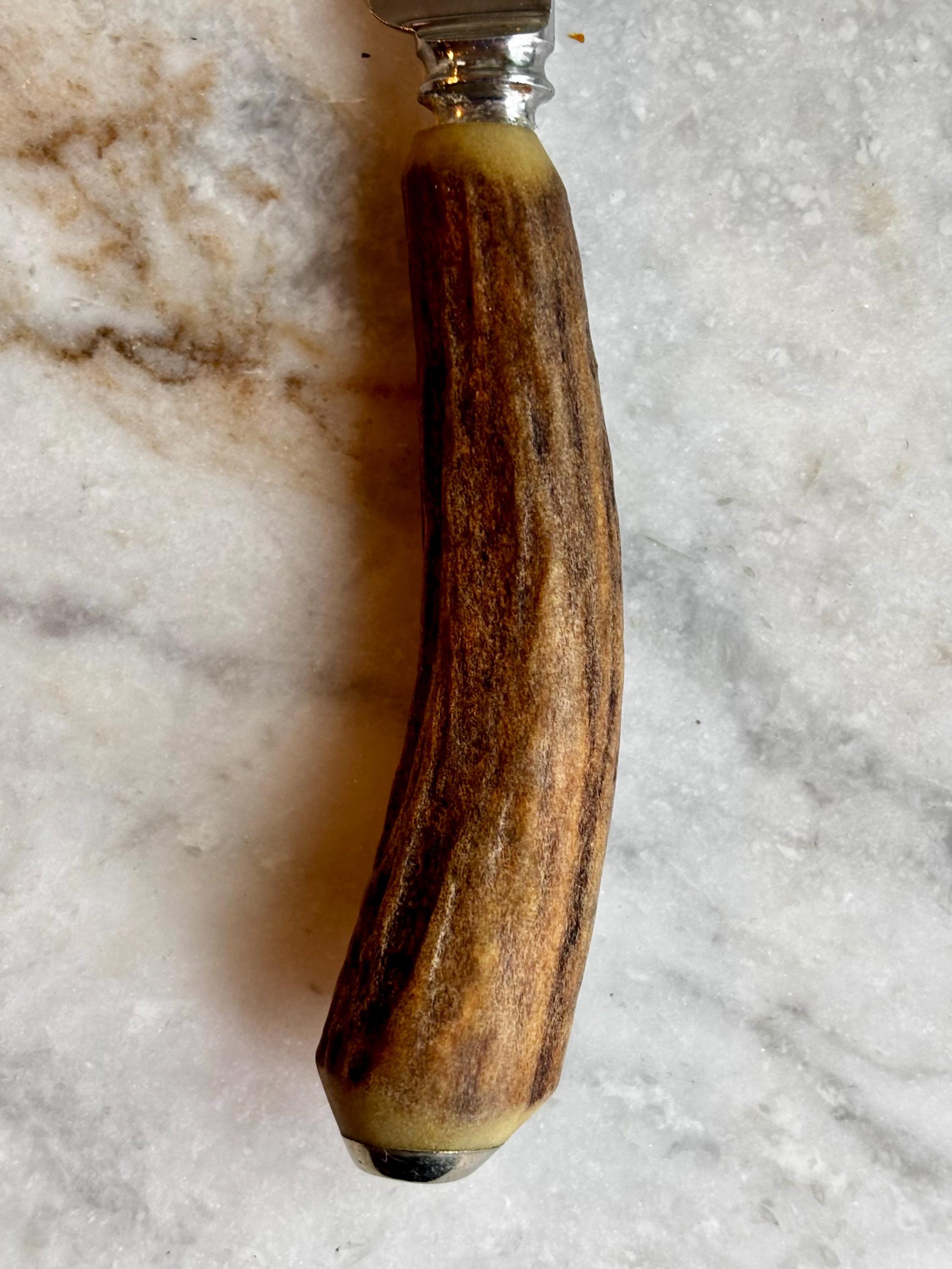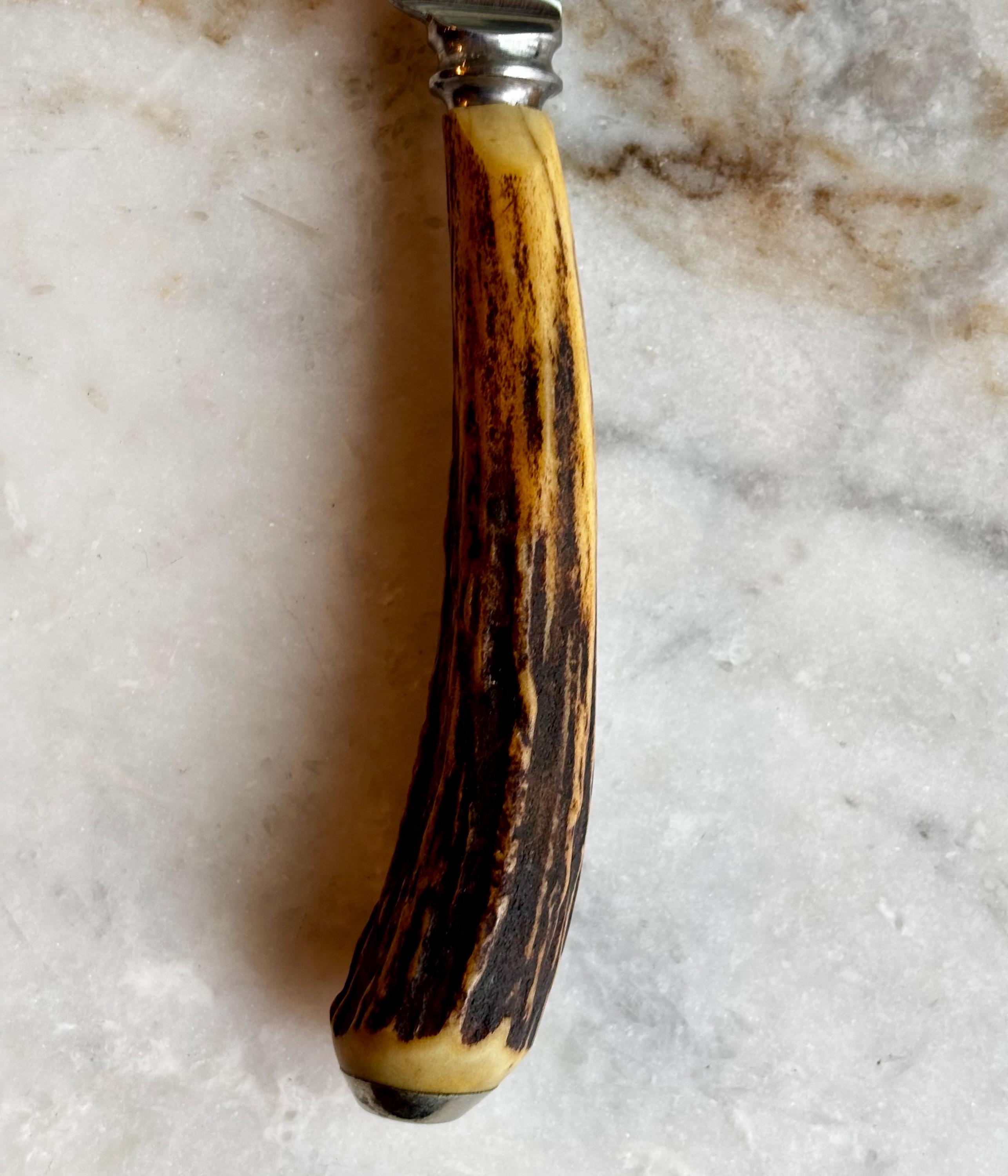 Buck up! We have another genuine, antique Staghorn carving set and steak knives.