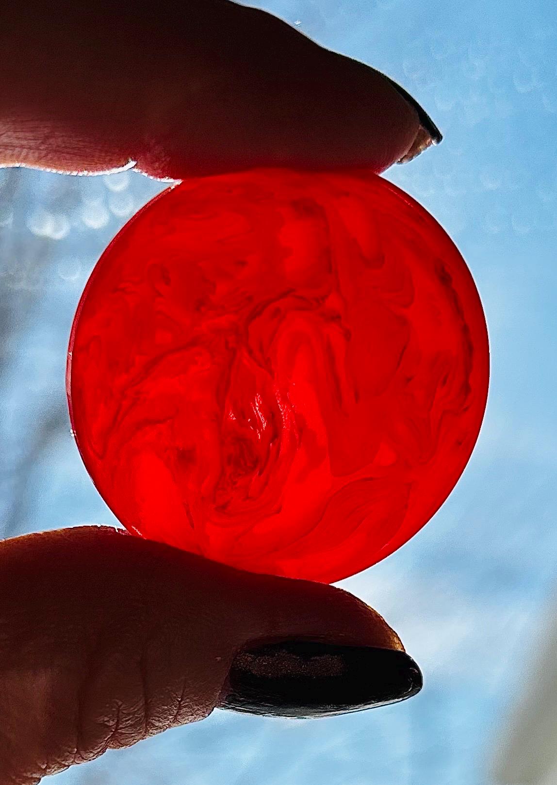 In it's original wood box, these Catalin poker chips are rare and gorgeous.