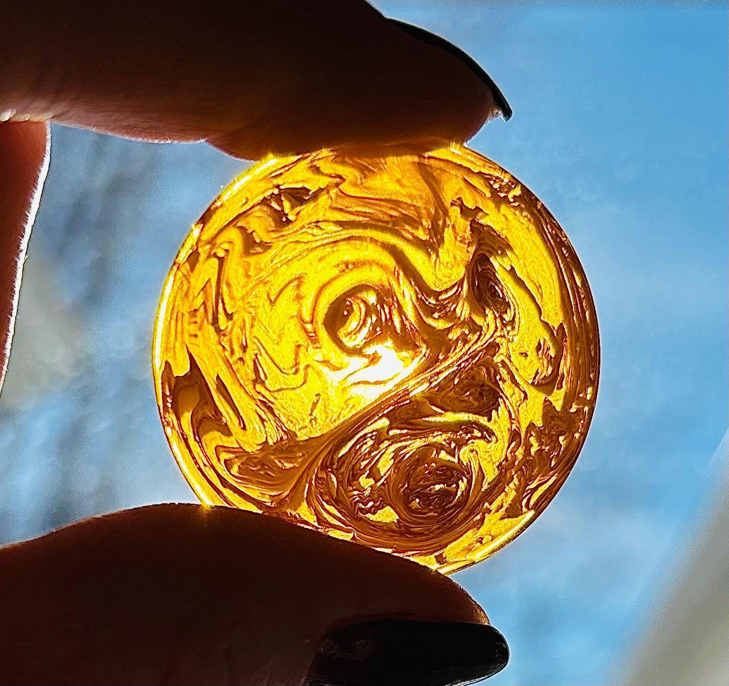 The American Catalin Corporation began making these exquisite marbled plastics in the late 1920's by adding color to liquid resin, casted in lead forms, and cooled.