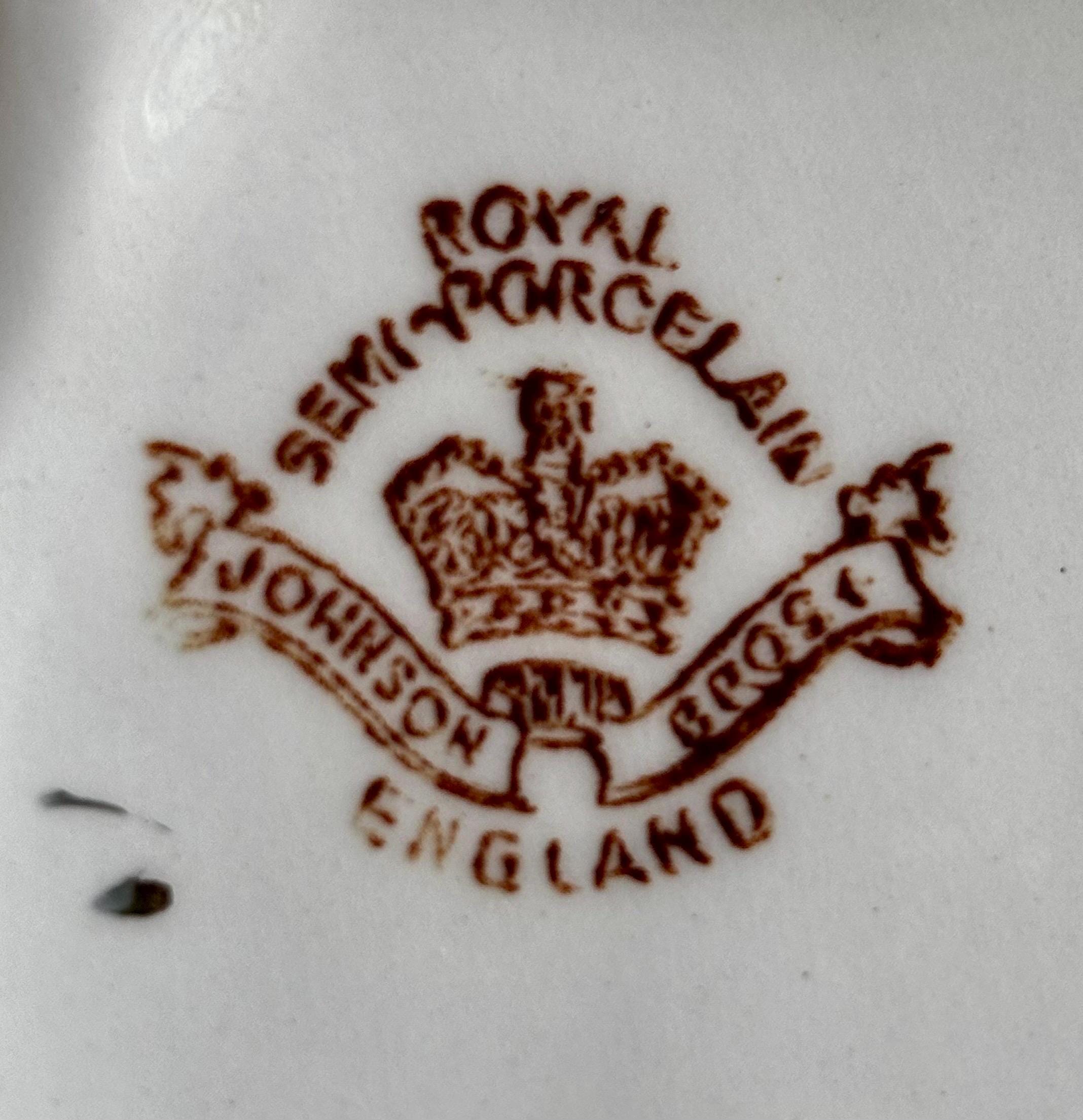 Royal Semi- Porcelain, refers to a type of durable refined earthenware, resembling porcelain. Staffordshire potters of this English invention, used this durable earthenware to rival true Chinese and European hard-paste porcelain.Measurements: