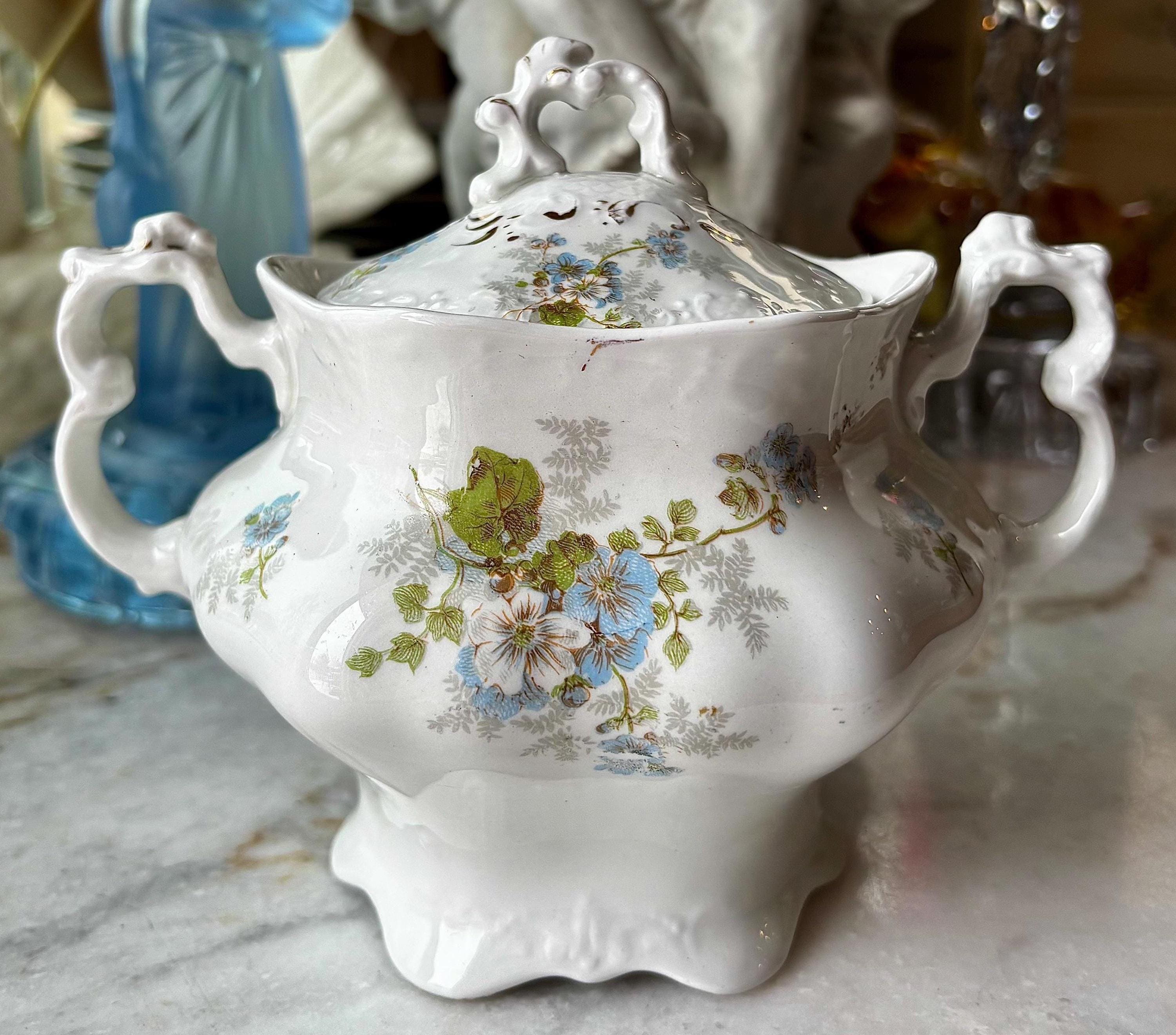 Antique Victorian Johnson Bros., England Large Lidded Royal Semi-Porcelain Sugar Bowl.