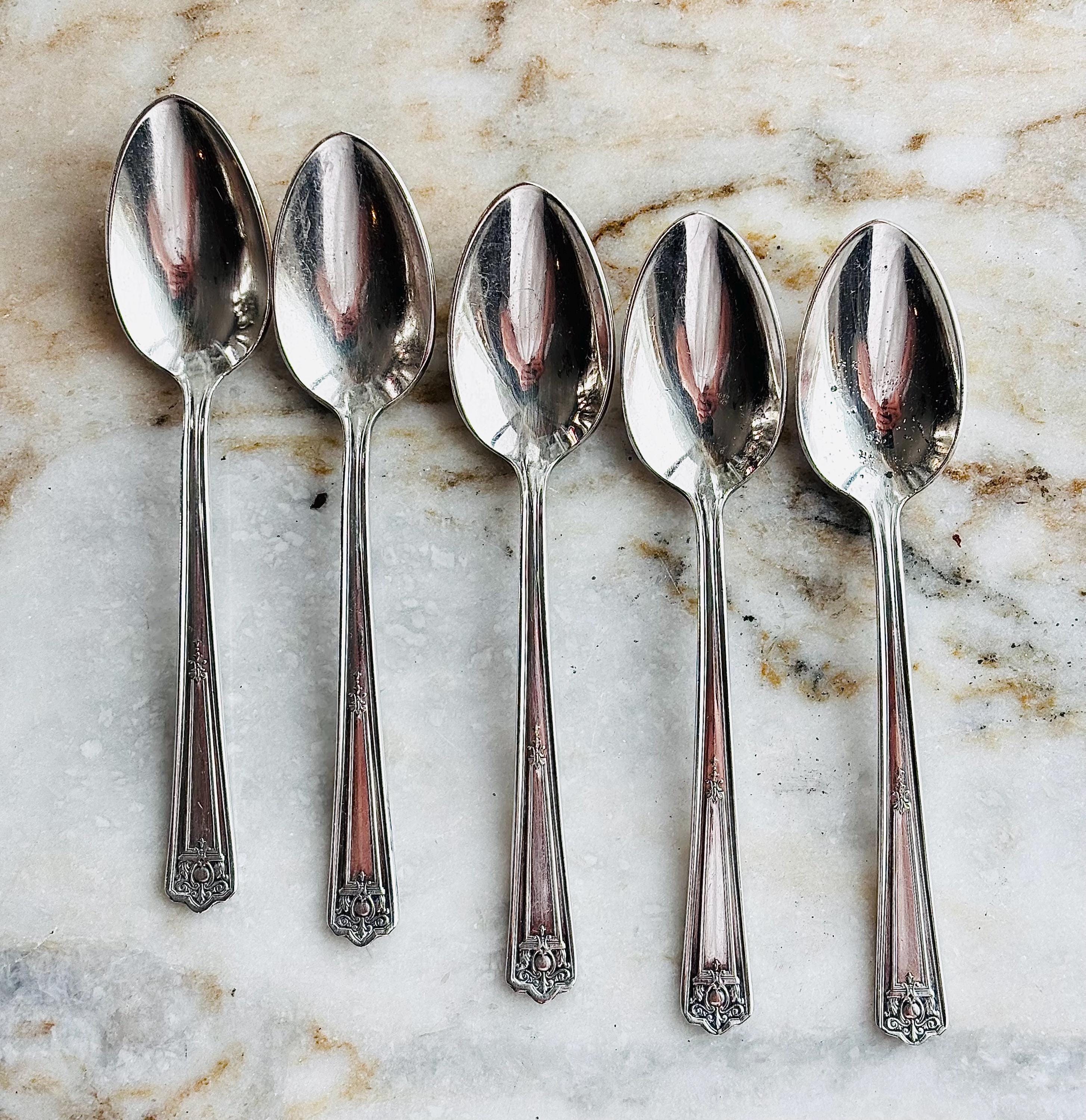 Gorgeous antique silver plated demitasse spoons. This set of 5 demitasse spoons, are by Rogers & Bros. in the pattern "1928 Majestic", representing the year made, as well.